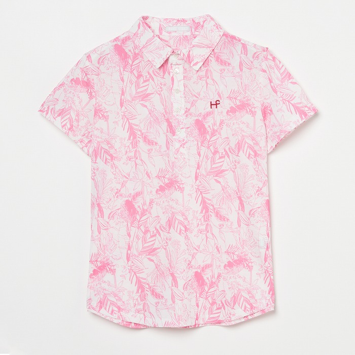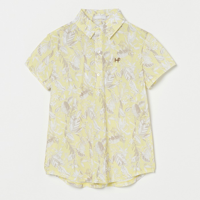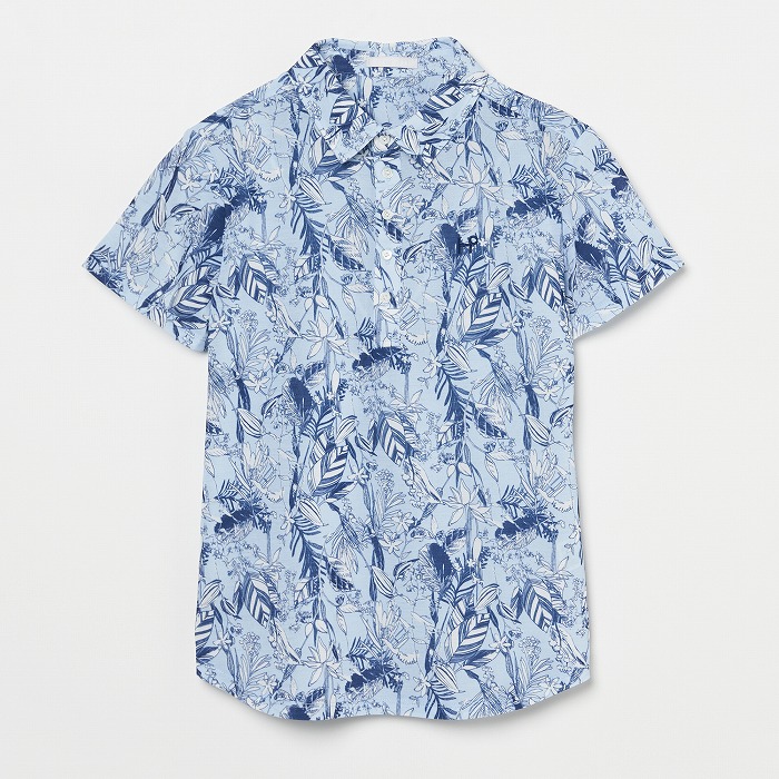 花びらを散りばめたようなプリントには、アイコンヘンリーのシルエットが隠れています。夏シーズンに人気の素材、コンチェロポリエステルを使用して作られたフレアー袖がポイントのシャツ。 吸水速乾やUVカット効果があり、コンチェロならではのドレープ感がきれいな袖のフレアーを作り出します。 すりガラスのような丸い釦も涼し気なムードを演出して、フェミニンなシャツになりました。