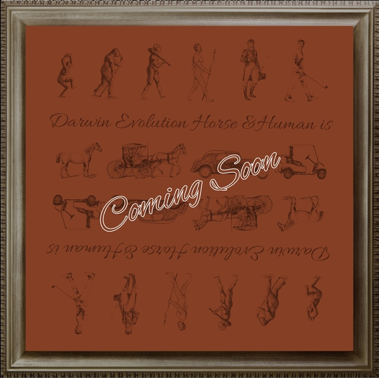 繊細なタッチのプリント表現が施された長袖モックネック。 ダーウィンの進化論と馬の関係性の変遷にゴルフを交えたユニークなグラフィックがポイント。