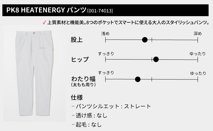 都会的で洗練されたデザインと高機能を融合させた、大人のための秋冬ゴルフパンツ。防寒性とストレッチ性を兼ね備えた上質素材を採用し、寒い季節のラウンドでも快適な着心地を実現します。計算し尽くされた8つのポケットは、スマートフォンやスコアカード、ティー、グリーンフォークなどをスマートに収納でき、プレー中の動作を妨げません。防寒・ストレッチ・収納力の三拍子が揃った、秋から冬のゴルフに最適な一本。スタイリッシュなシルエットで、オンコースでもクラブハウスでも品格あるゴルフスタイルを演出します。