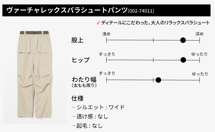ヴァーチャレックスパラシュートパンツ