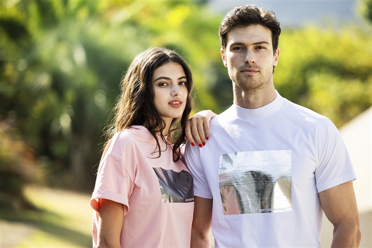 RosasenxRegina コラボアイテム 左から ニットポロシャツ 045-23343 ¥17,400  ポロシャツ 045-23242 ¥14,300