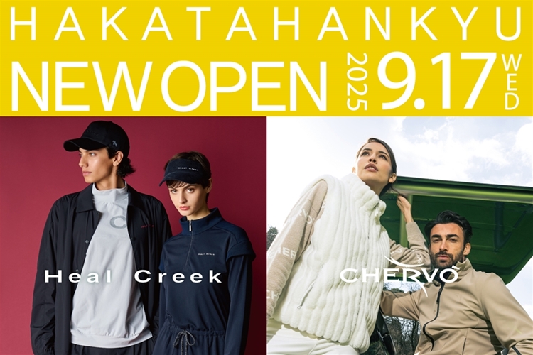 株式会社グリップインターナショナル(本社:神戸市、代表取締役会長兼社長 桑田 隆晴)のオリジナルゴルフウェアブランド「Heal Creek(ヒールクリーク)」とイタリアのプレステージゴルフウェアブランド「CHERVO(シェルボ)」の直営店が、2025年9月17日(水)、博多阪急6階にオープンいたします。