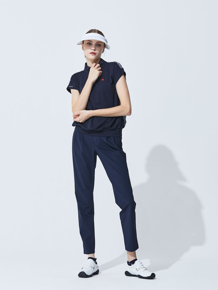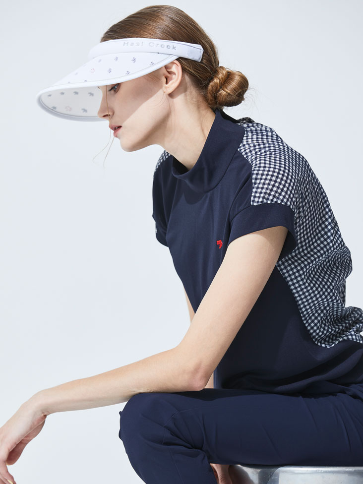 後ろ見頃がギンガムチェックに切り替わったユニークなトップスに、冷たい肌触りが嬉しいパンツの組み合わせ。 トップスは強撚スムースとサッカー生地のギンガムチェックで出来ており、どちらもさらりとした風合いが特徴です。ゆったりとしたシルエットも相まって暑い日にストンと着るだけで様になる可愛いアイテム。 接触冷感とUV機能が秀逸な2タックパンツは、ぜひ一度は試していただきたい夏のおすすめアイテム。 アイコンのヘンリーがプリントされたクリップバイザーは、メッシュ素材を重ねており、涼し気な印象を与えてくれます。