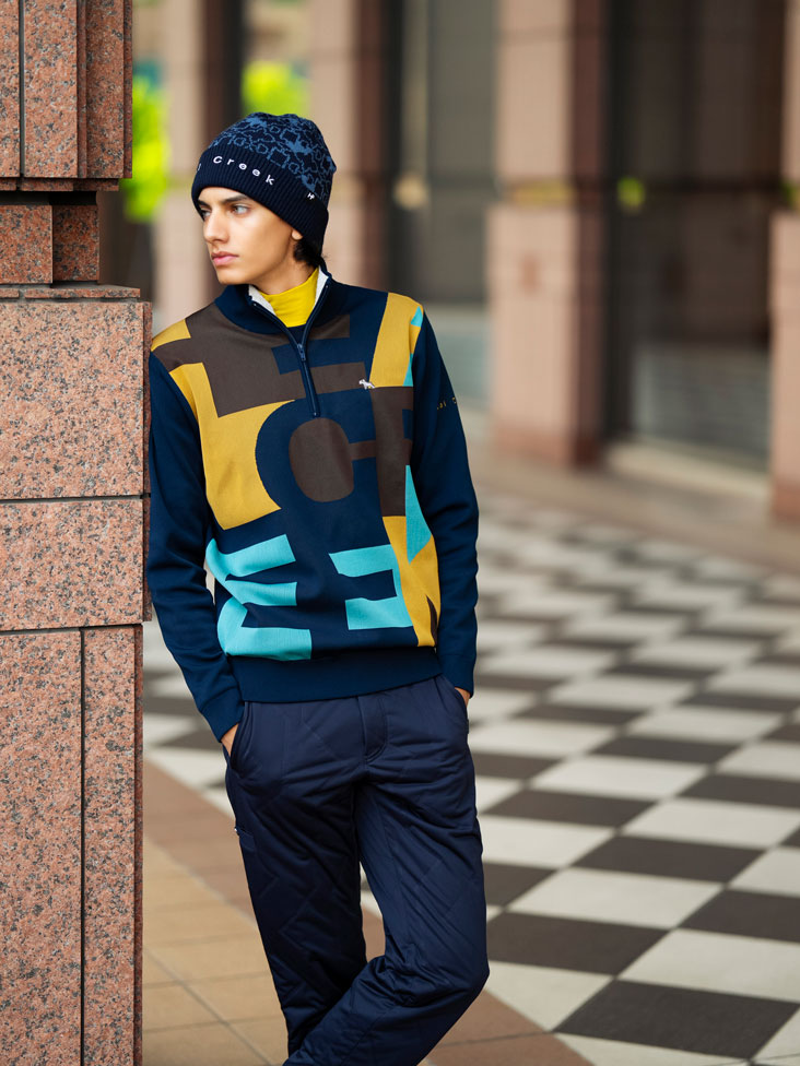 • ミップスウェード切替モックネック長袖シャツ/001-24111