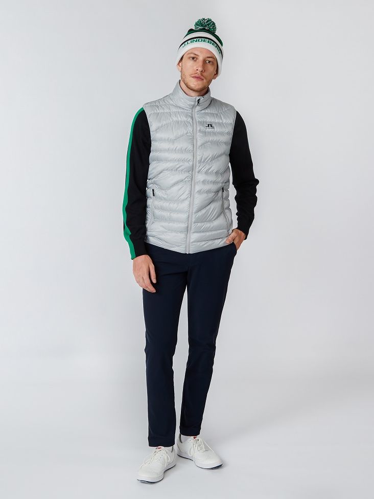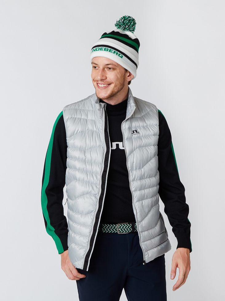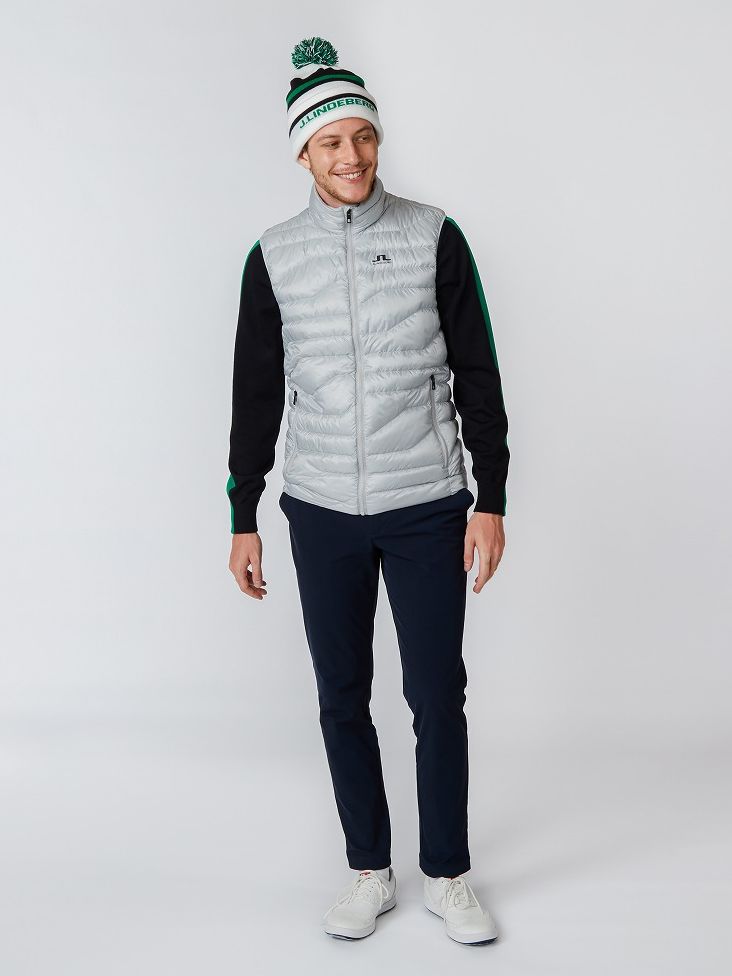 ニットに軽量ダウンベストを合わせることで気温調整がしやすく秋口から冬にかけて使用できる実需型のスタイリング。ダウンベストはフィルパワー800を使用しゴルフ以外にタウンやアウトドアでも使用いただけます。