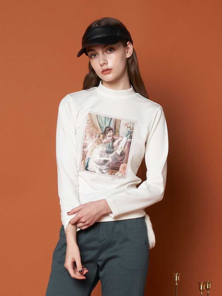 カットワーク刺繍 長袖ポロシャツ/012-24910