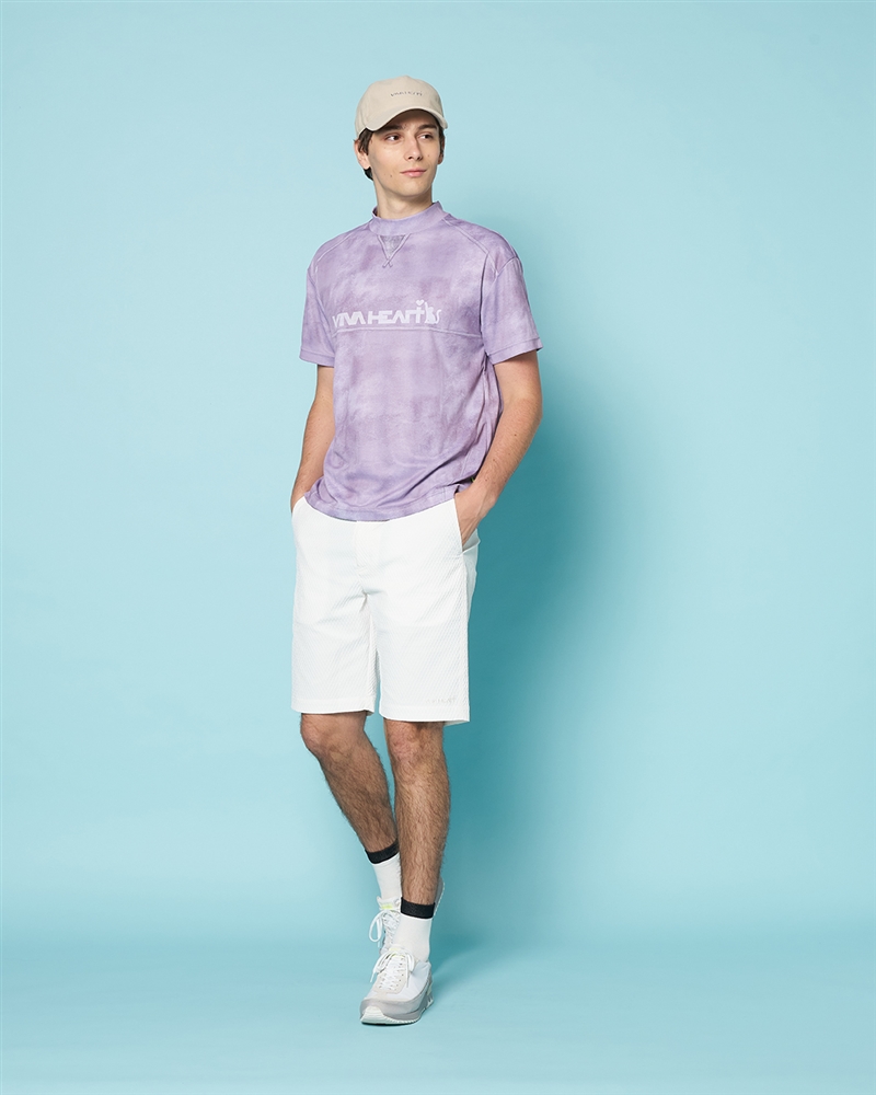 ピグメント染め半袖モックネックTシャツ/011-25343