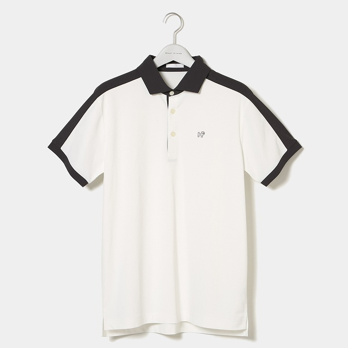 非常に編目が細かなマイクロ鹿の子がエレガントな印象の素材で肌触りもよく、表側は僅かにシャリ感があり裏側はとろけるような肌触り。衿と肩の切り替えの上品なカラーリングスポーティーでありながら上品なイメージ。シックなカラー展開にした大人のシャツに仕上がっています。