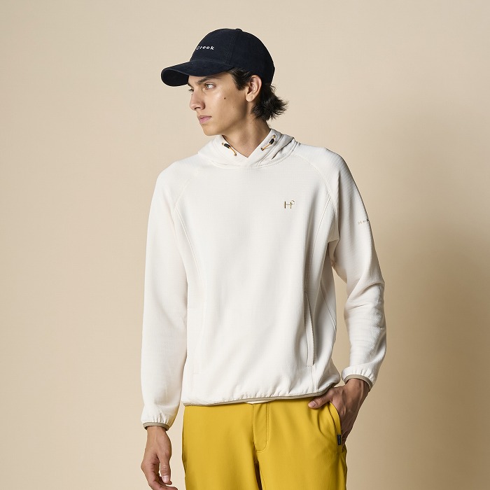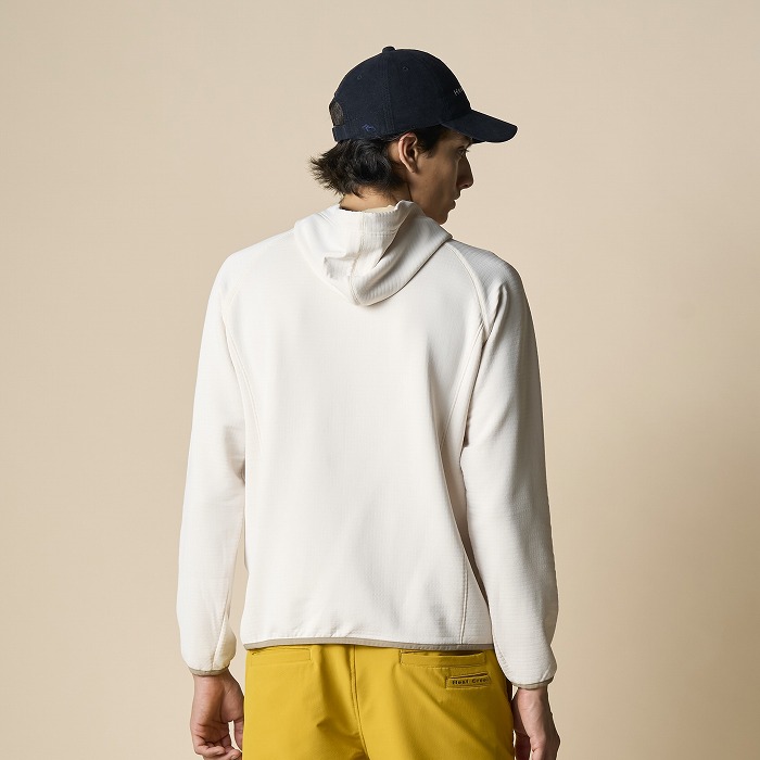 大人の余裕を感じさせる、高機能フリースパーカー。快適な着心地と洗練されたデザインを両立した、新しいフリースパーカーが登場。裏のグリッド構造が空気を含んで保温性を発揮しながらも、通気性に優れ、秋冬のラウンドを快適にサポート。フードのスピンドルに配したアクセントカラーが、シンプルながらもさりげない個性を演出します。動きやすさを追求したラグランスリーブ、スイングの邪魔にならないフードデザインなど、機能性も抜群。アクティブプレーヤーへ。