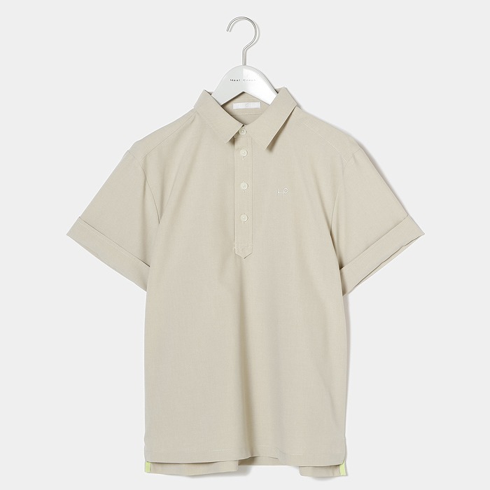 麻のようなナチュラル感と、ドライな風合いを持つ多機能素材のリフラクス。シワになりにくく、繰り返しの洗濯でも毛羽立ちが少なく、きれいが長持ちするうえに、接触冷感、吸汗速乾、UV遮蔽率80と、夏に頼もしい素材です。メランジ調の色合いもポイントです。デザインはドロップショルダーでゆったりとしたシルエットが新しいシャツ。カジュアルなデザインですが、お揃いのショートパンツと合わせると清潔感漂うルックスになるところがヒールクリークならでは。
