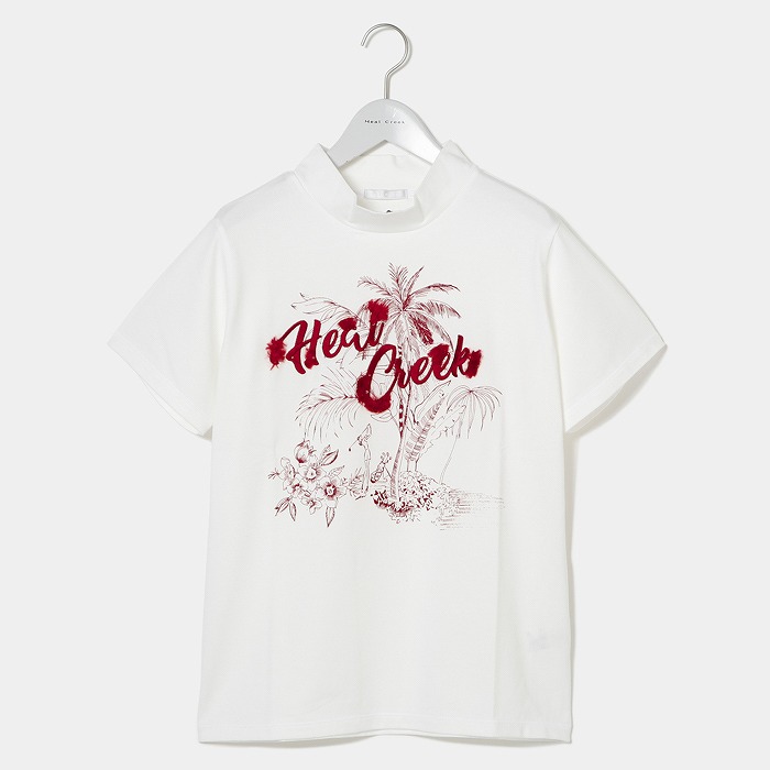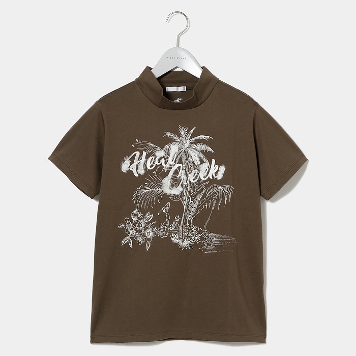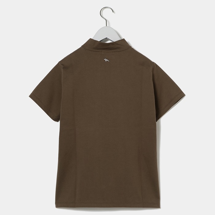 リゾートゴルフにピッタリなカジュアルなモックネックシャツ。ハワイでのラウンドをイメージしたプリントにヒールクリークの文字をモールヤーンで刺繍しました。さらに刺繍した糸を手作業でカットしてふわふわと毛先を遊ばせた凝った手法で仕上げています。CBにはヘンリー君のワンポイント刺繍も。