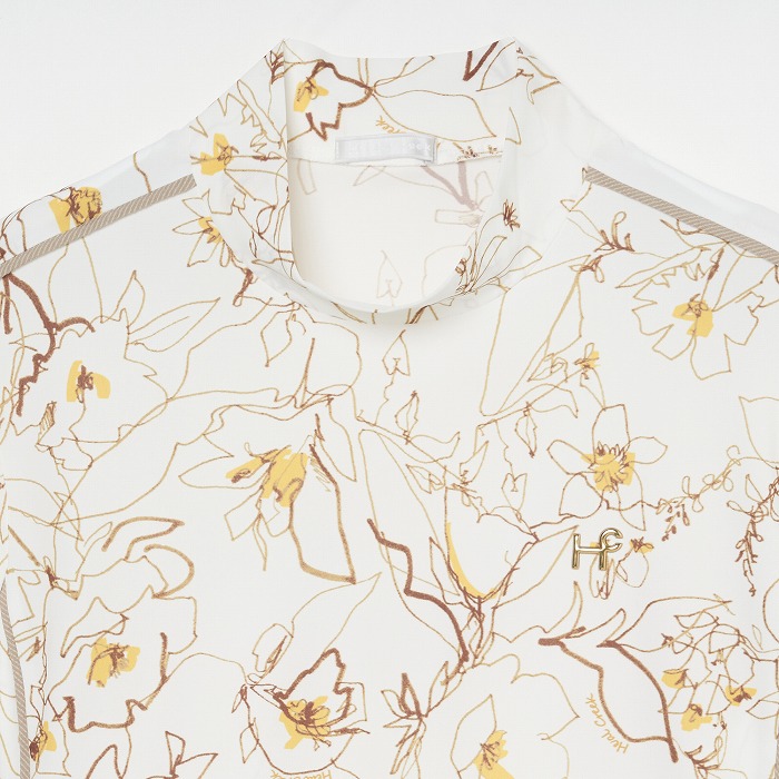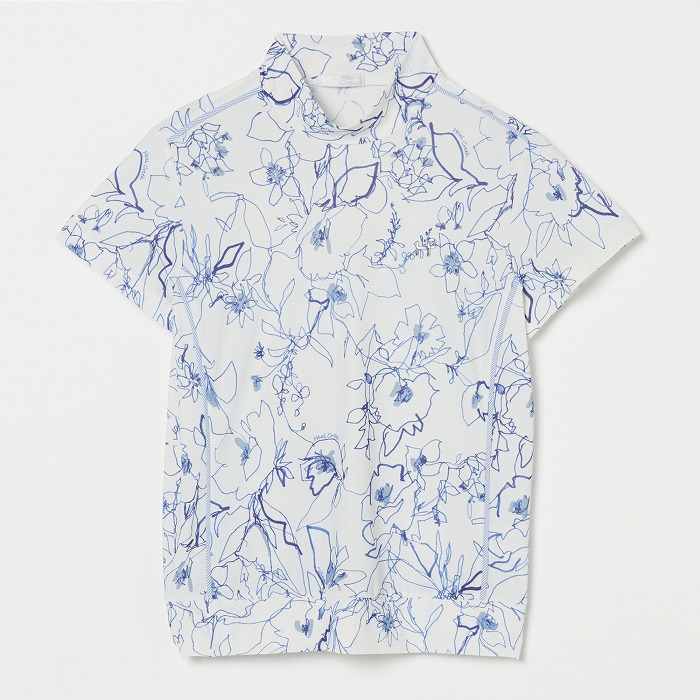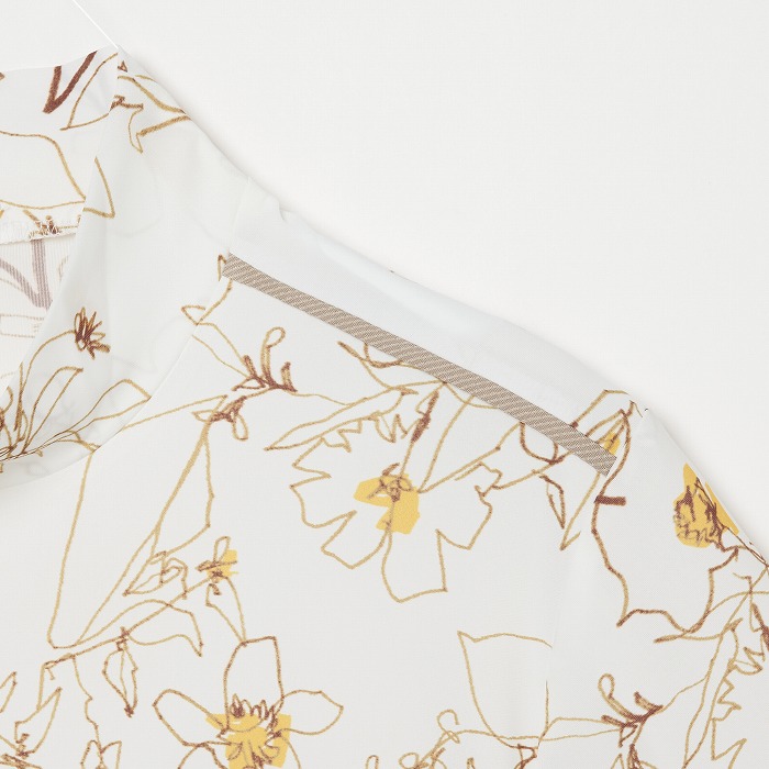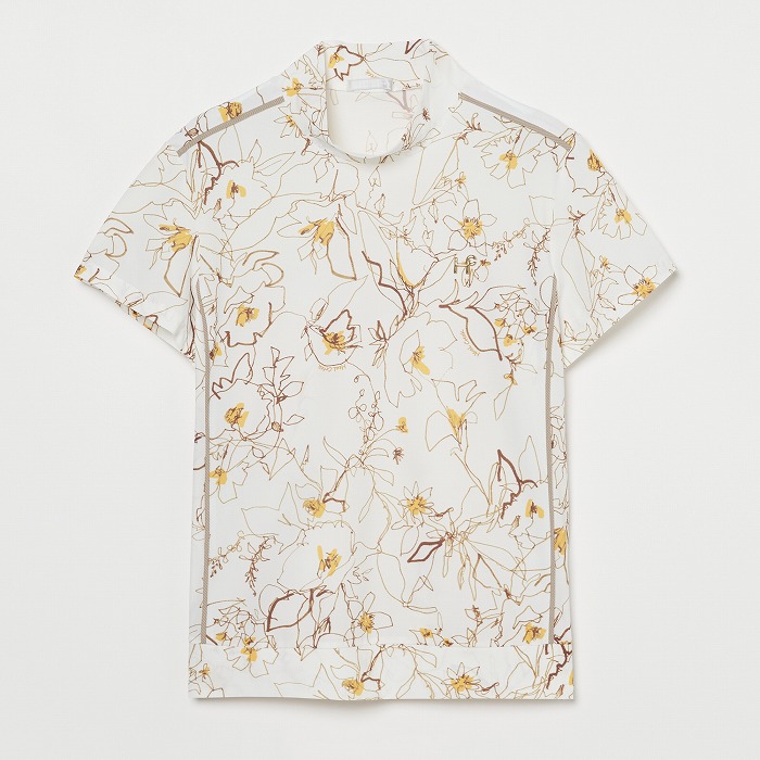 清涼感あふれる白地の花柄プリントは、人気のコンチェロポリエステル素材で快適な着心地を叶えます。 気軽に楽しめるモックネックとサッカーストライプのパイピングがスポーティでおしゃれ感アップ。 サッカーストライプパンツとコーディネートして、エレガントでスタイリッシュなルックを完成させてください。