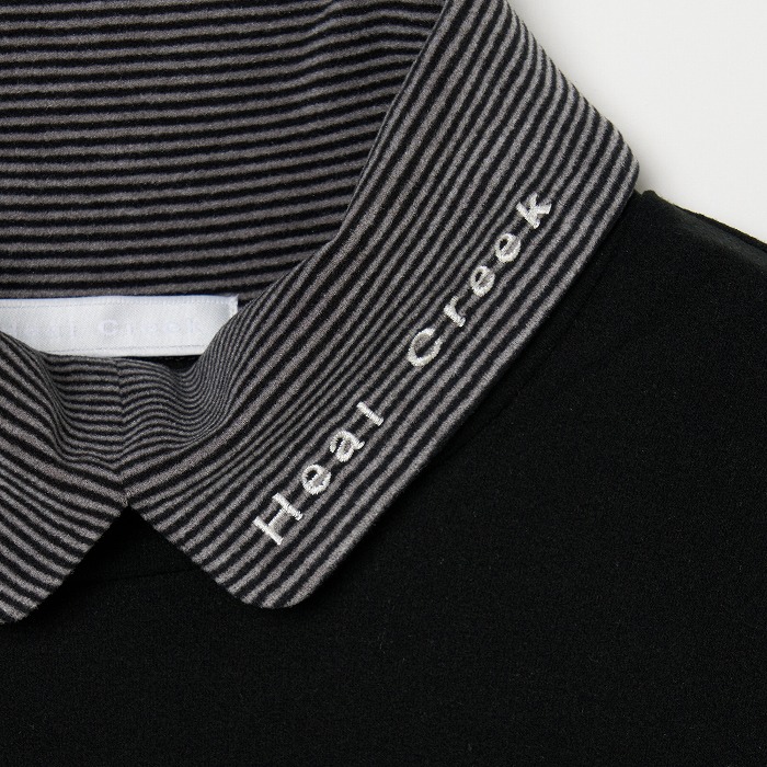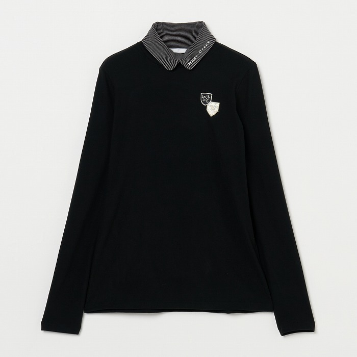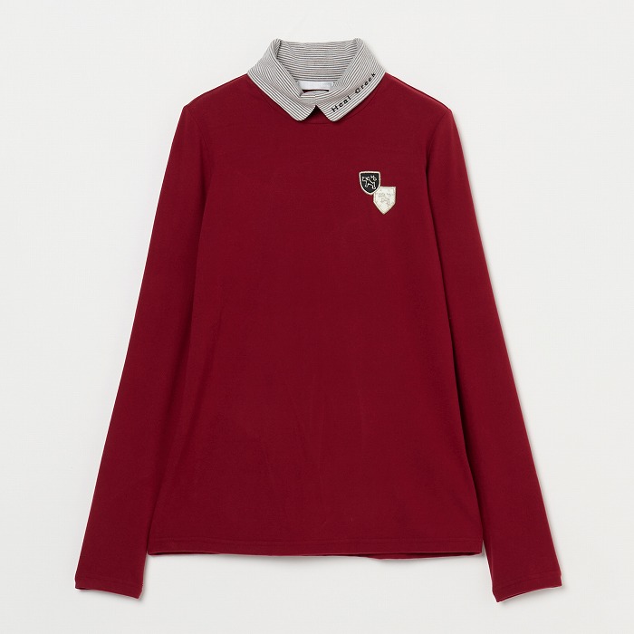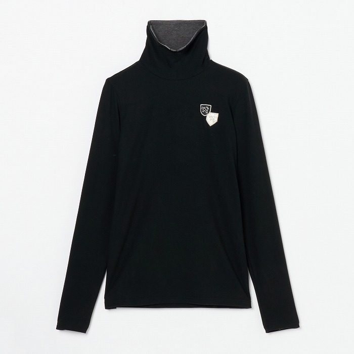 肌寒さを感じる季節には、実績があり暖かみのあるラグジュアリーな素材感のインナーが活躍します。お洗濯を繰り返しても美しい起毛感が長持ちします。ラメ糸を使用したヘンリーのワッペンを重ねてシンプルなハイネックインナーを可愛らしくアレンジ。衿の裏側には配色を効かせた別布を使用しています。折り返して着用すれば小さなシャツ衿のように、違った雰囲気で楽しめるデザインです。
