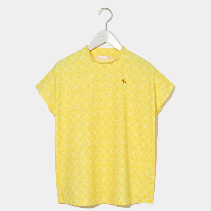 ノンストレスな着心地のドルマンタイプのゆったりシャツに、シンプルな台形スカート。個性的なビンテージ風のプリントで個性的にしており、肌離れの良さにストレッチもあり。この時期のゴルフにおすすめです!