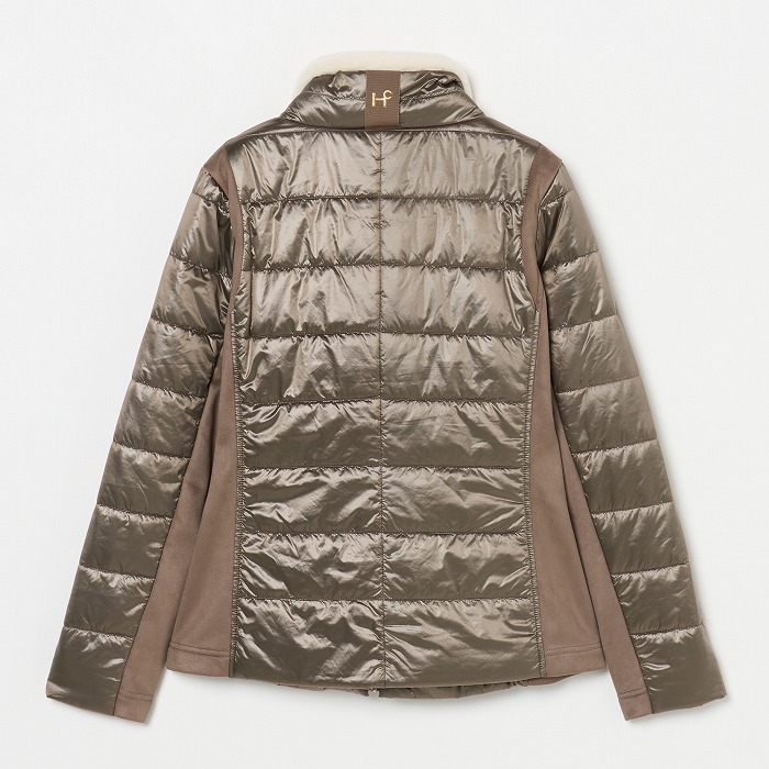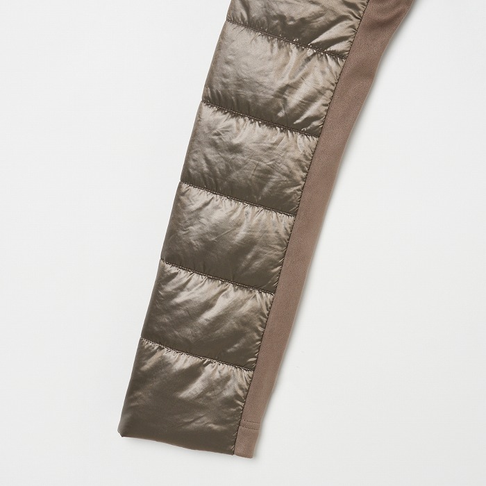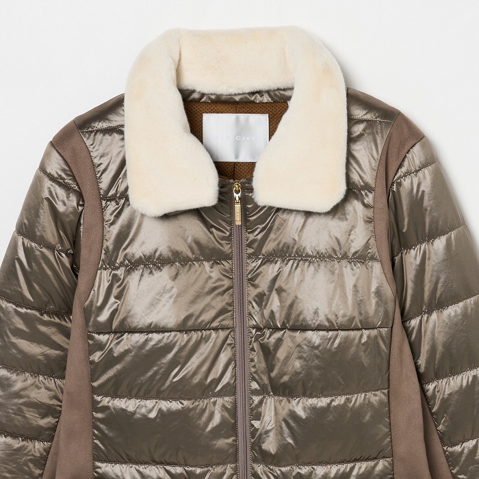 シャンブレータフタ×スエードフリースにブークレーニットでアクセントを加えた中綿プレイブルゾン。シックな色を重ねて大人のゴルフウェアを作りました。顔映りをよくする白いエコファーは釦で簡単に着脱が可能です。中綿部分にはオクタという特殊裏地を使用しており暖かくプレイできます。スエードフリースのストレッチ性により、しっかりファスナーを閉めてもスイングできる頼もしいブルゾンです。