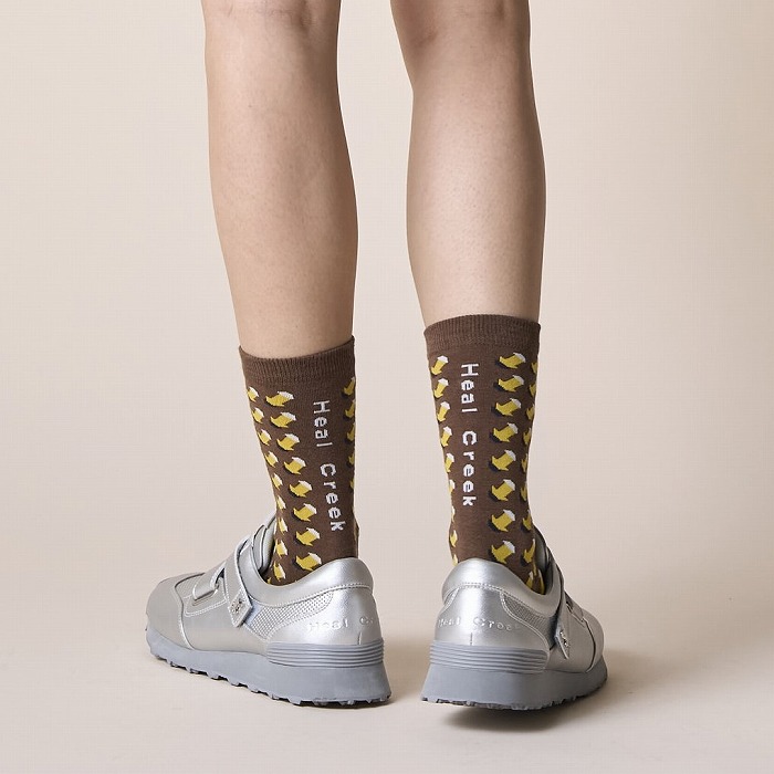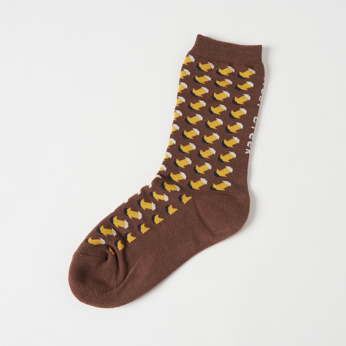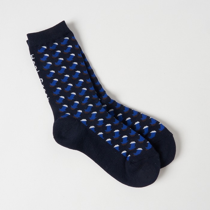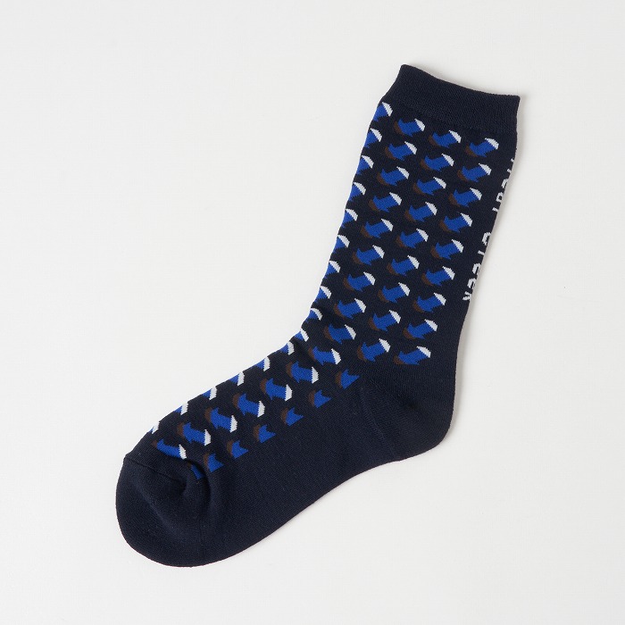 小さなジャガード柄は靴下にはピッタリ。ゴルフウエアらしく個性的な配色で着こなしのアクセントになってくれます。かかと側に縦に入れたロゴもシャープなアクセントになっています。