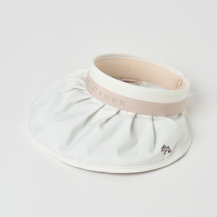 日傘で人気のサマーシールド®生地をつば裏に使用した高機能クリップバイザー。つばの周囲は形状記憶ワイヤー入りでお好みの角度に調整可能。強い日差しからお顔をしっかりガードします。遮光性99.99%、紫外線遮蔽率99%以上、-4℃のクーリング効果で、涼しく快適な着用感を実現します。くるくる巻いてコンパクトに収納でき、カチューシャとしても使える2WAY仕様も嬉しいポイント。グログランのエレガントなルックスからは想像できないほどの実力派、才色兼備な逸品です。