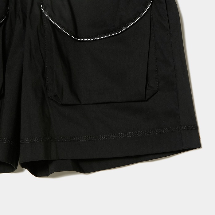 前に雨蓋付立体ポケット、後ろに立体ポケットと着ポケット、サイドにシームポケット、ショートパンツですがいろんなものが入ります。きれいな足の方はこれ一枚で涼しく暑い夏のゴルフをお楽しみください。ちょっと恥ずかしい方は涼しいレギンスや、圧着レギンスなどに重ね着すると、格好良いです。ローレンス刺繍×C.Nyハイカウントローンブルゾン(005-51410)とセットアップになります。