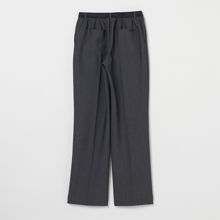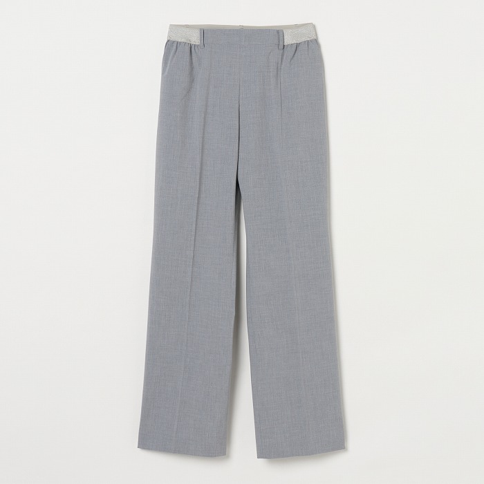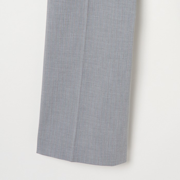 ポリエステル/レーヨン/ポリウレタン。少しストレッチのあるシーズンレスな素材を使用したストライプ柄 のワイドパンツ。脇から後ろにかけてウエストゴム仕様にしています。