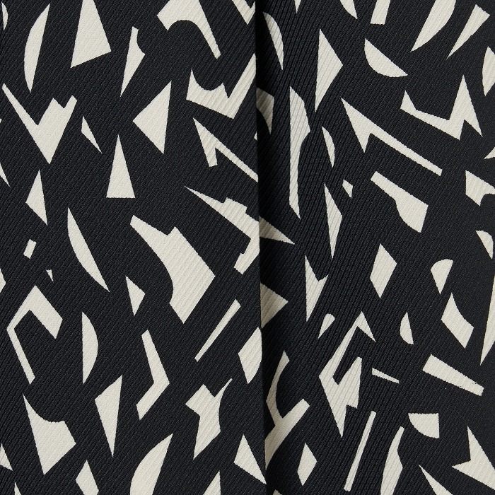 グレー、ブラック グレンチェックのラミーシャーク 防シワ、UVカット、吸水速乾、接触冷感 8月にぴったりの素材です。程よいワイドシルエットにしています。チャコール、マティスの切り絵の様なプリント柄で こちらも少しストレッチがあります。
