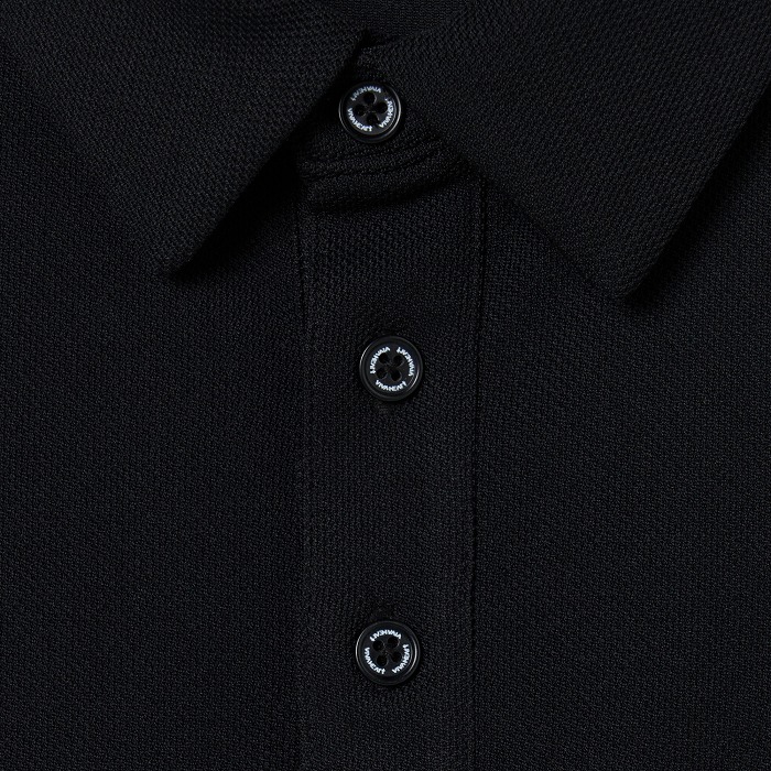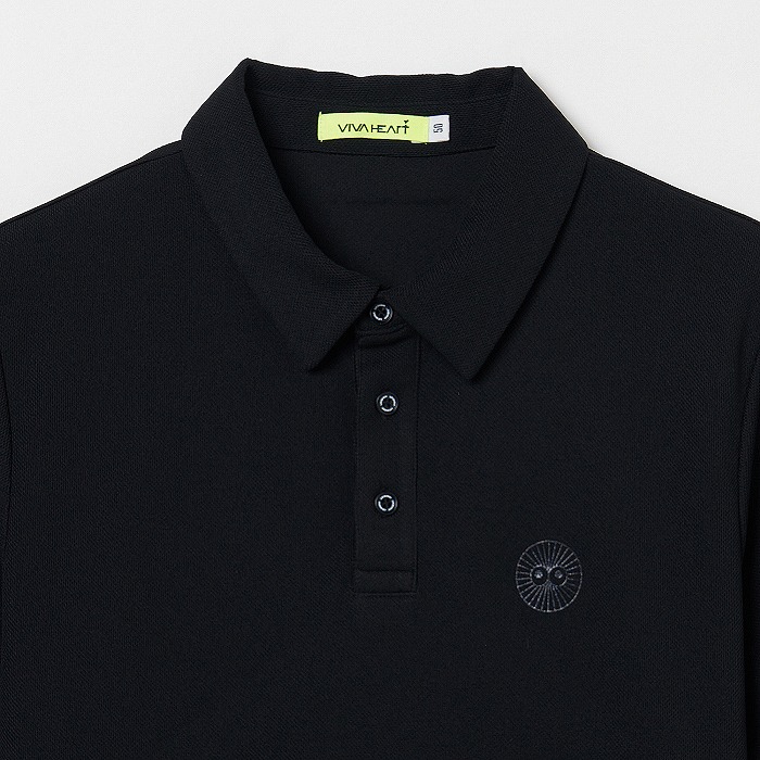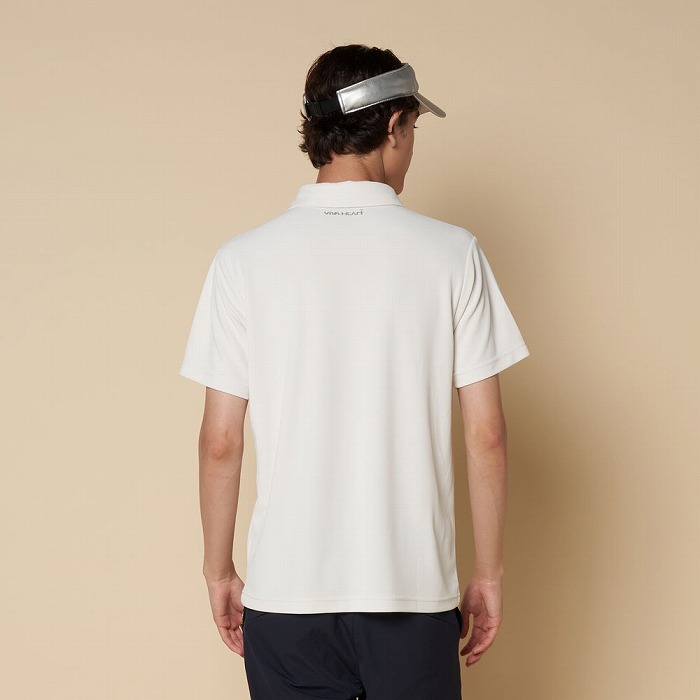 残暑が厳しい時期のゴルフに吸水速乾素材を使用。高級感漂うカノコはストレッチ性に富み、肌面はスムースになっているので着心地はなめらか。台衿で大人らしいポロシャツに仕上げました。VIVA HEARTのアイコン「ハートアイ」を胸にワンポイントでプリント。グリッタープリントでさりげなく、かつ存在感を演出します。