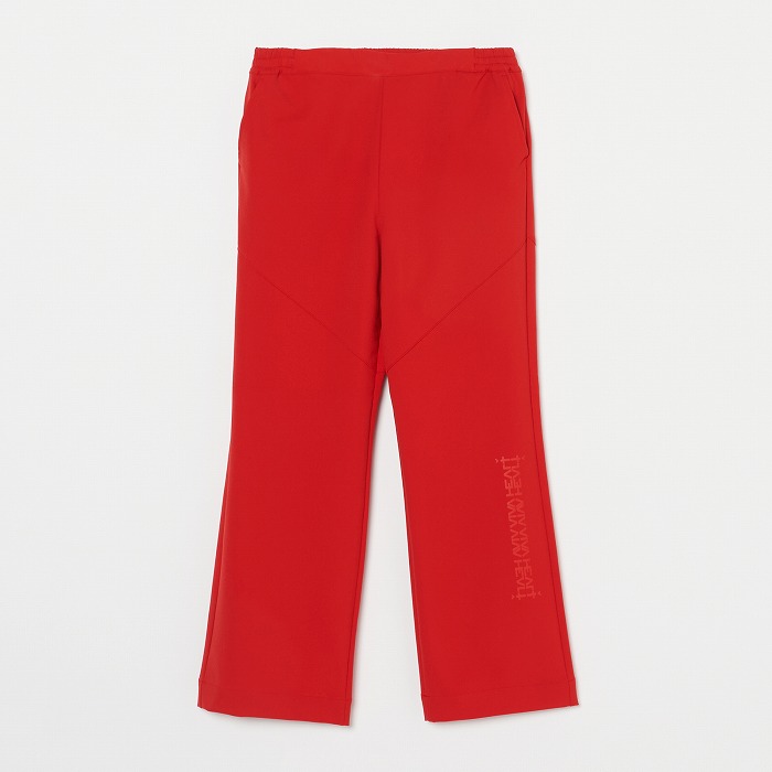 雨の日にも安心な撥水機能と4WAYストレッチ素材のストレートパンツ。 大胆ロゴが目を引く切替と、美脚ラインのシルエットを重視したデザインです。少し上に入った切り替えは脚長効果も狙えるアイテムです。