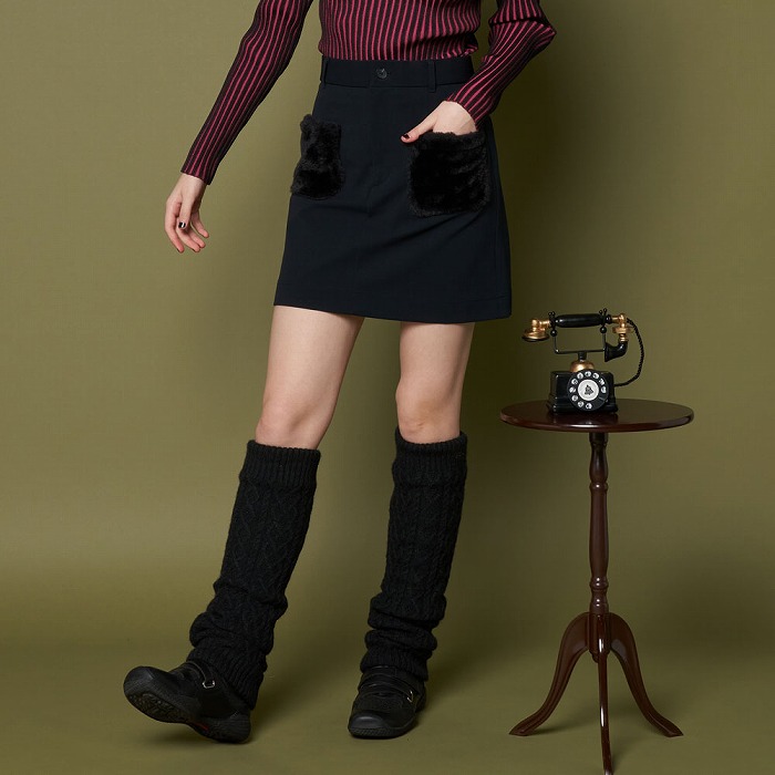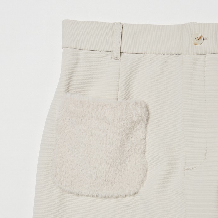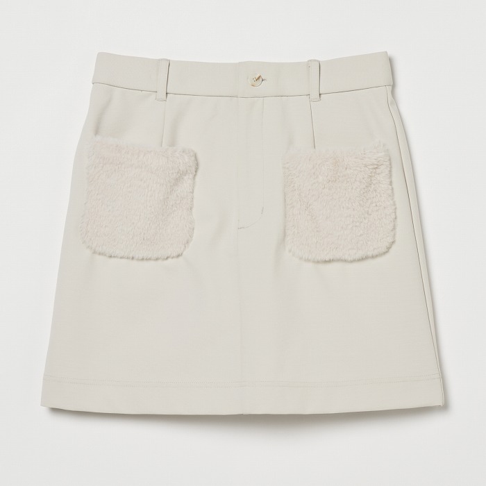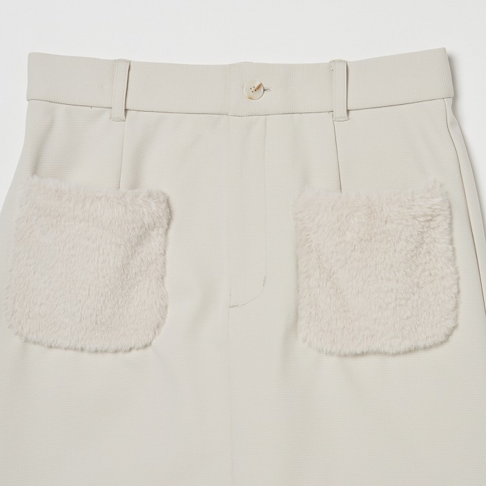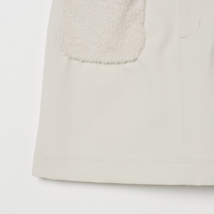 寒い冬のゴルフに、暖かなファーポケットがポイントのミニスカート。ミニマルな台形タイトシルエットで、大人可愛い雰囲気を演出。本体はストレッチ性の高いグログランジャージーを使用。タイトながらも足捌きも良く快適な着心地です。同素材のベストと合わせて着用もおすすめ。