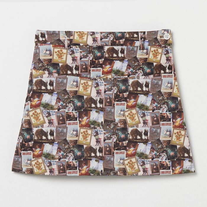 目を引く総柄がポイントのミニマルな台形ミニスカート。ルノワールやゴッホ、モネ、フラゴナールなどフランスを代表する画家たちの展覧会をイメージした「ミュゼ」プリントと、ポップでレトロなポルカドットの中にハートアイが隠れたキャッチーな総柄「ハートアイドット」の2カラー展開。素材は暑さの残る秋のゴルフにも嬉しいUVカット機能付きのストレッチ素材です。