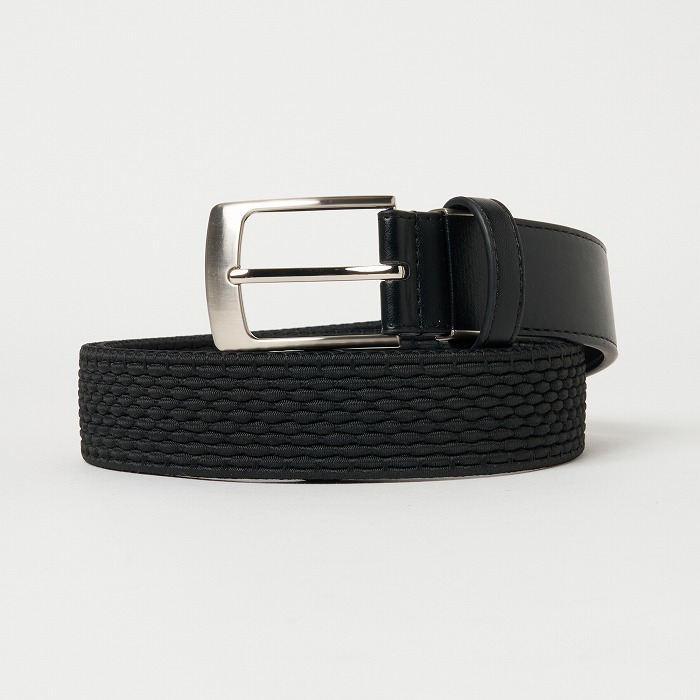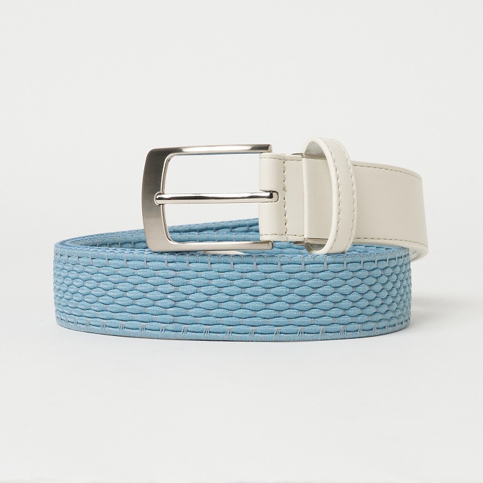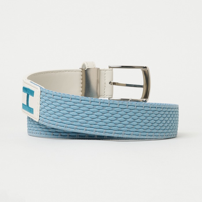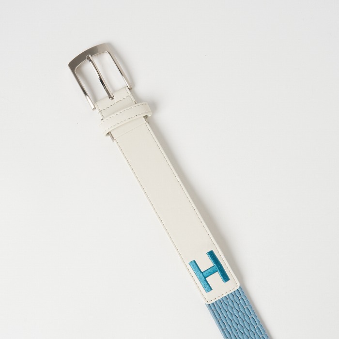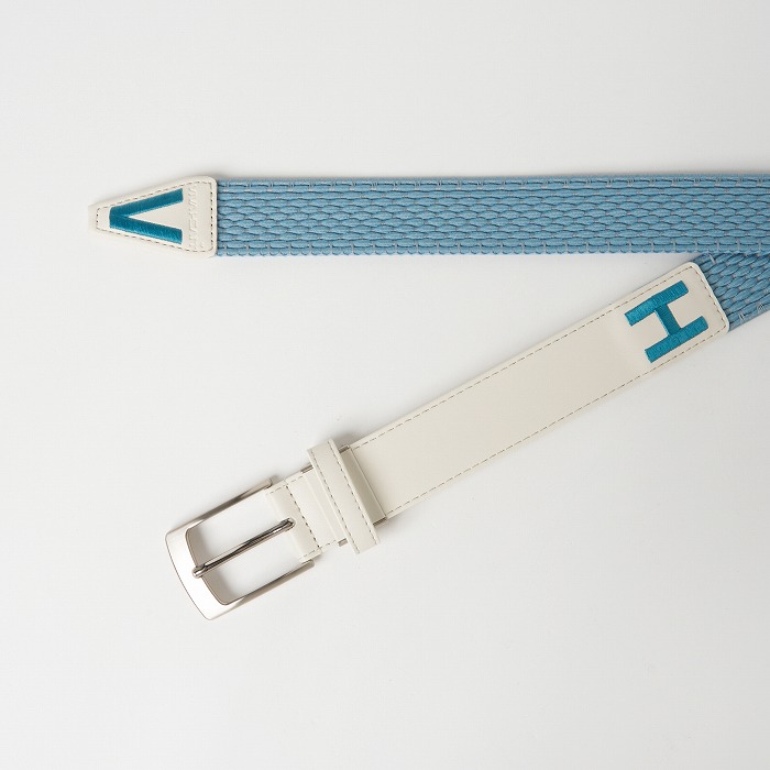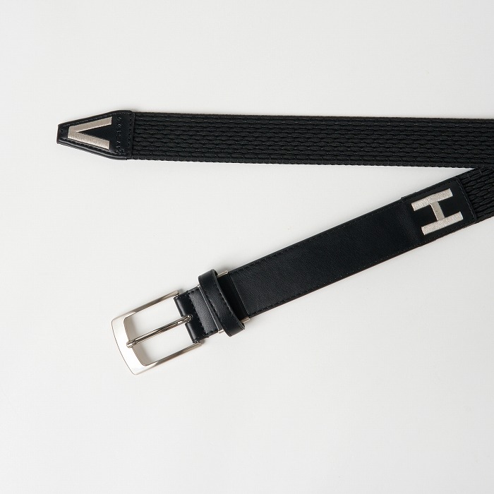ゲバルト社のストレッチ性に優れたゴムを使用したゴムメッシュベルトです。ベルト穴を気にせず調整でき、ストレスフリーな着用感が特徴です。ベルト帯の合皮部分には「H」、剣先部分には「V」の刺繍しており、着用した時に並んで「VIVA HEART」を表すようデザインされています。合皮部分は、サイズ調整パーツ付きなので自分の身体に合わせてカットできるため、VHの位置を調整して着用いただけます。