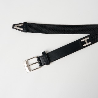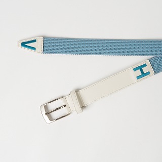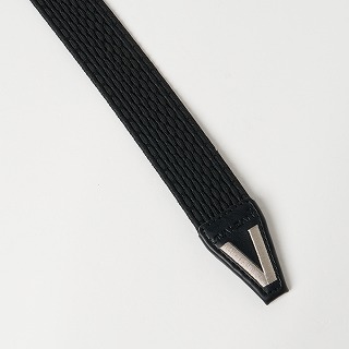 ゲバルト社のストレッチ性に優れたゴムを使用したゴムメッシュベルトです。ベルト穴を気にせず調整でき、ストレスフリーな着用感が特徴です。ベルト帯の合皮部分には「H」、剣先部分には「V」の刺繍しており、着用した時に並んで「VIVA HEART」を表すようデザインされています。合皮部分は、サイズ調整パーツ付きなので自分の身体に合わせてカットできるため、VHの位置を調整して着用いただけます。