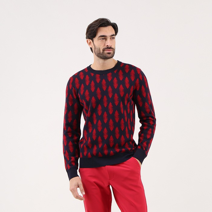 今シーズンのモチーフ(森のシダ)をデザインした丸首のプルオーバー。素材はウール/アクリルとなります。シェルボには珍しく全身柄物となります。