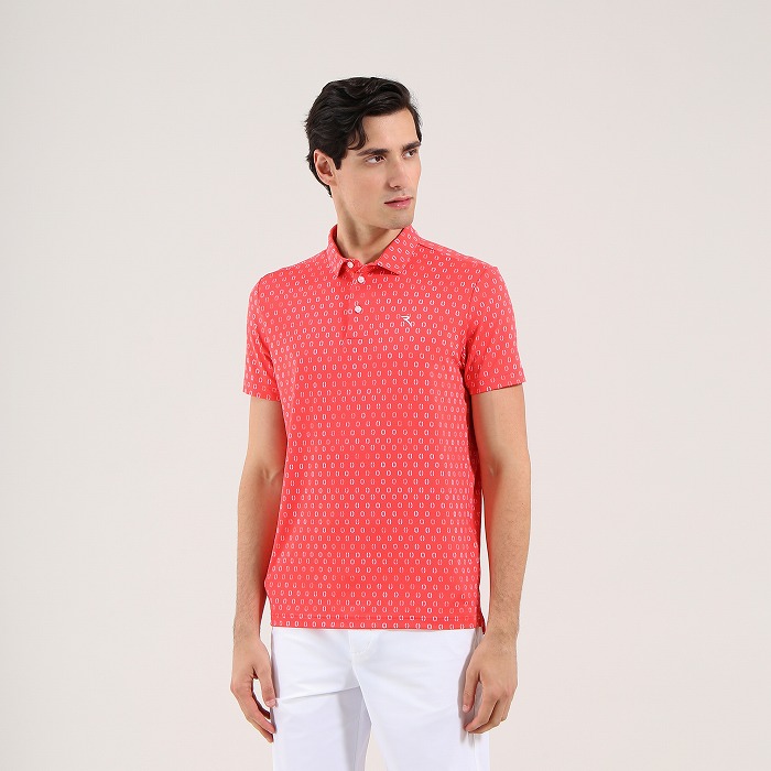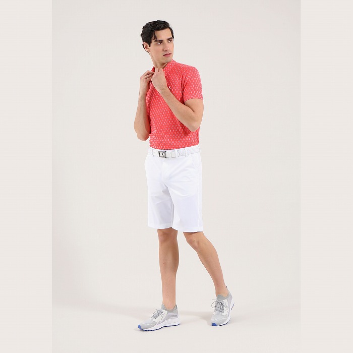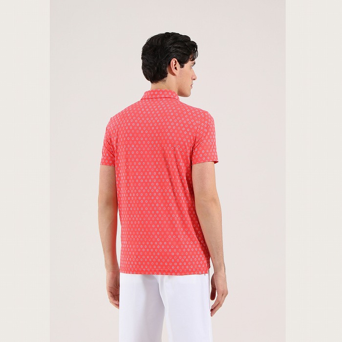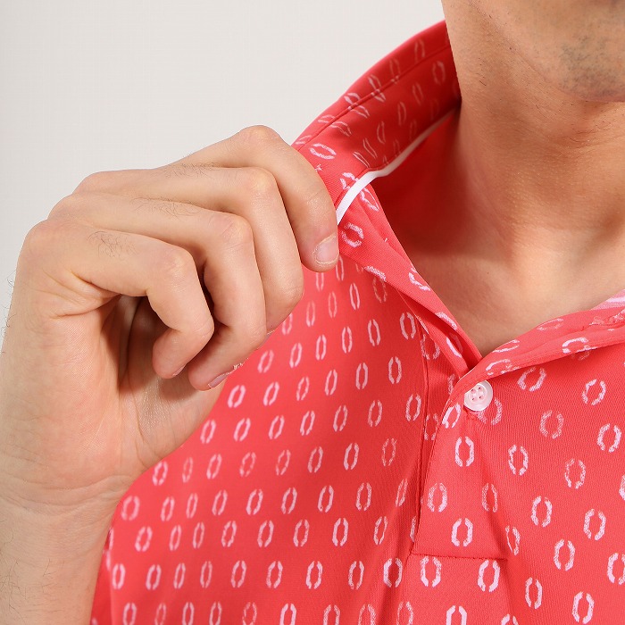 全身プリントの半袖シャツ。襟は、とも襟となります。プリントの柄はデザイナーたちの想像力を象徴する『水』の要素をテーマとしたプリントになります。素材はナイロン/ポリウレタンで、素材特性はUVカット、吸水速乾となります。
