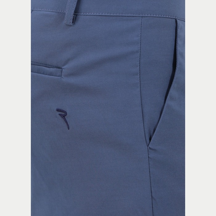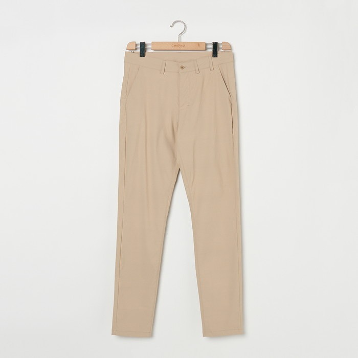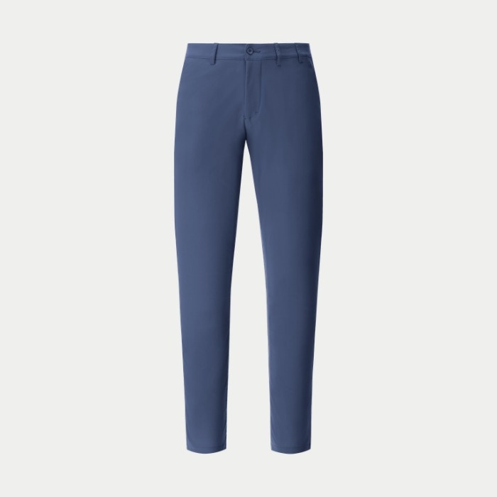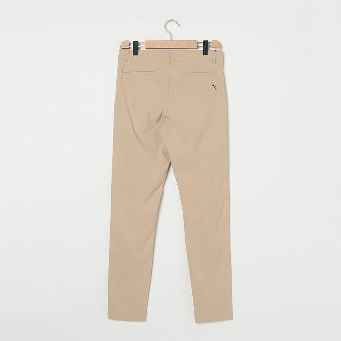 コットンのような肌触りの生地のミッドシーズン メンズパンツ。素材はナイロン/ポリウレタンとなります。裾幅17cm。 素材機能としては、吸水速乾、UVカット、ストレッチとなります。ウェストの開閉はダブルボタンとファスナーになり、さわやかで着心地がよく、スリムなフィット感がデザインを引き立てます。