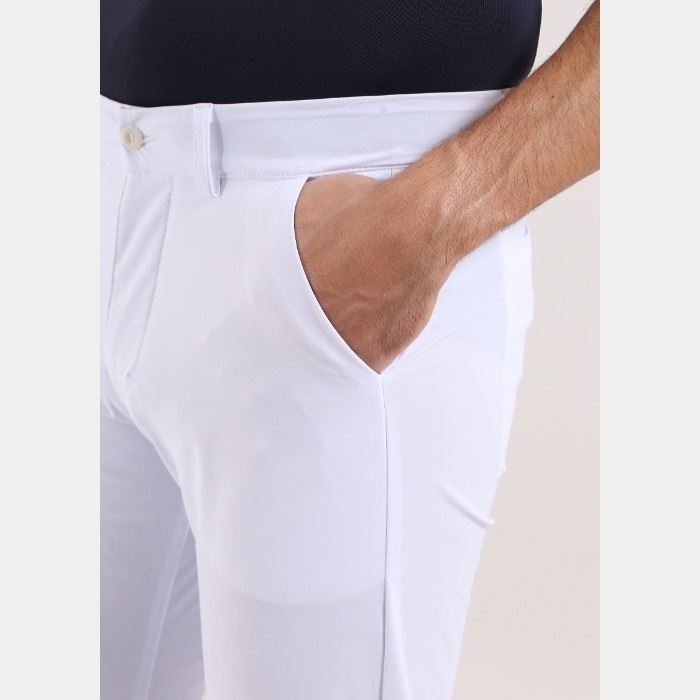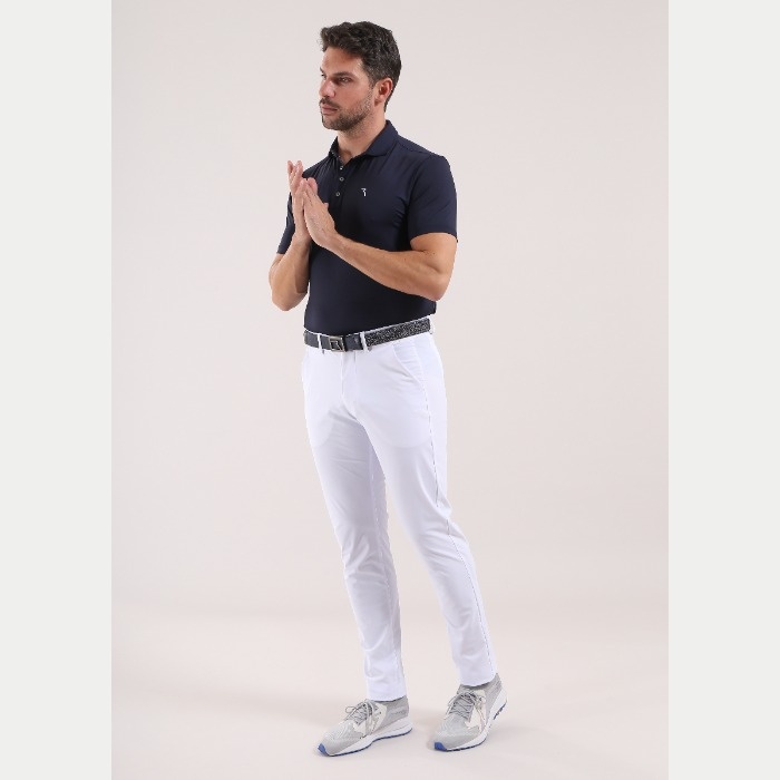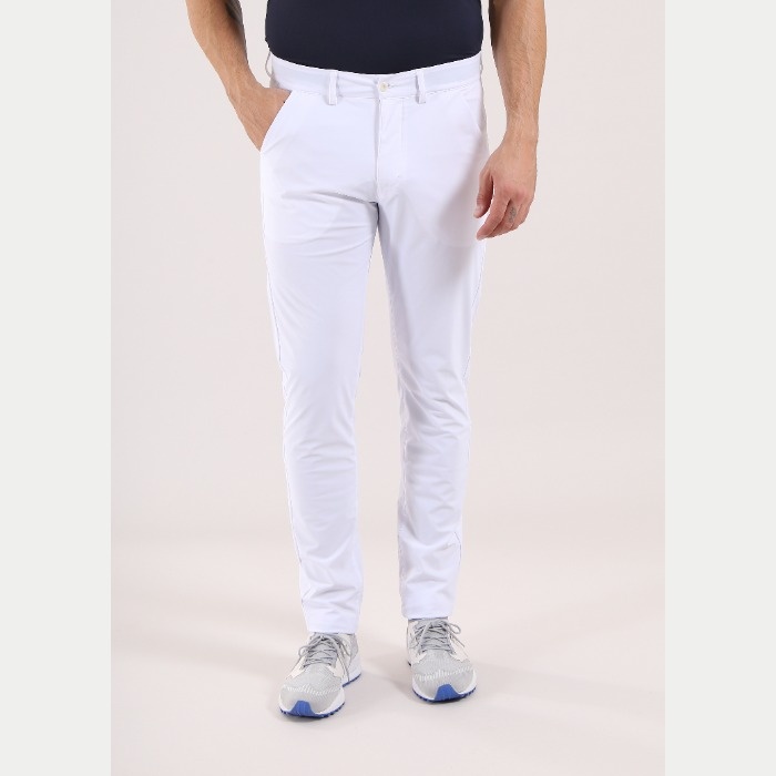 日焼け防止機能を備えたストレッチチノ。涼しげな感触で、シーズンを通して快適に着用できます。グリップのあるウエストバンドがフィット感を向上させ、ジッパーとダブルボタンの留め具、ダブルウェルトの後ろポケットがスタイリッシュなデザインを演出。スリムフィット。
