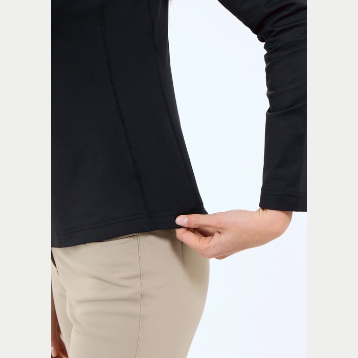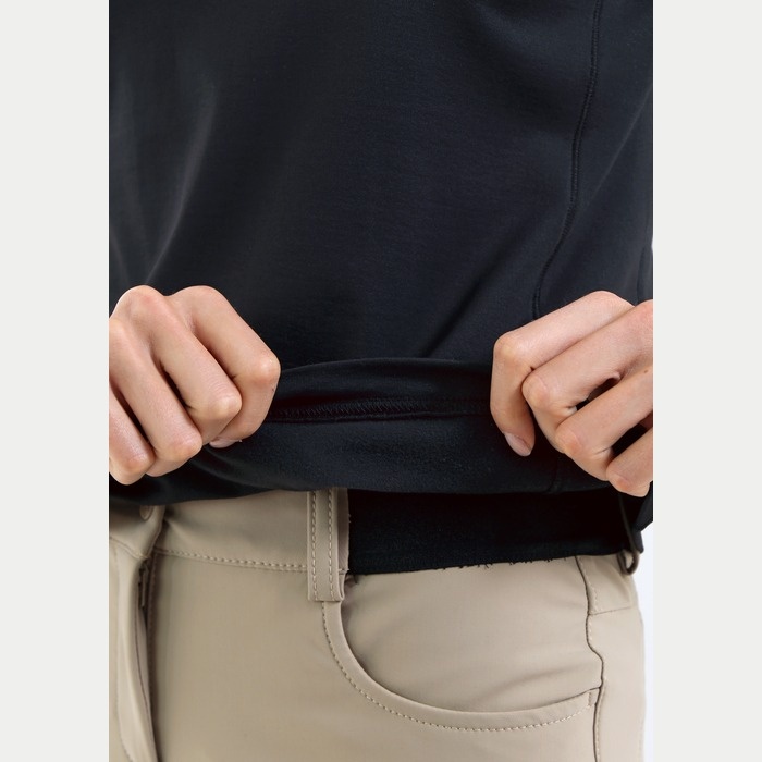 このブラッシュドジャージー生地のベースレイヤーは、高い伸縮性と優れた手触りを兼ね備えています。内側は柔らかくブラッシングされており、暖かさと快適さを提供。トーンイントーンのロゴが施され、シンプルで洗練されたデザインが特徴です。寒い季節にぴったりのアイテムで、必須の一着です。