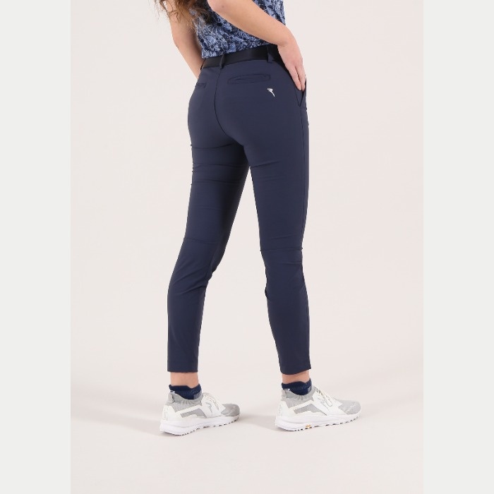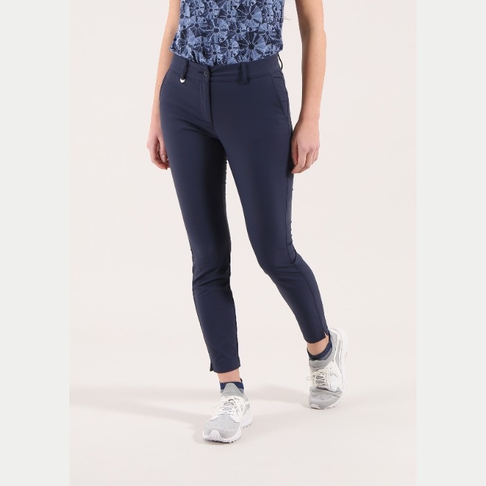 裾幅13㎝のやや細身のロングパンツ。ウエスト後ろ部分はストレッチ素材を嵌め込んだデザインとなります。素材機能はUVカットとなります。