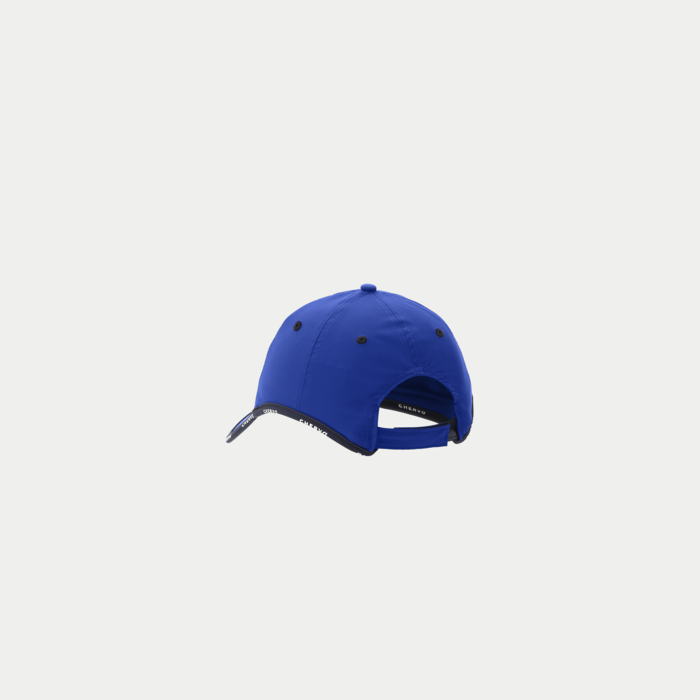 定番の6パネルキャップ。ロゴテープでパイピング仕様。正面にはシェルボマーク刺繍がポイントです。耳近くの形状がカーブしているのも特徴です。後ろのマジックテープでサイズ調整可能となります。