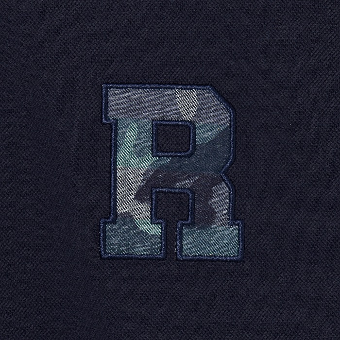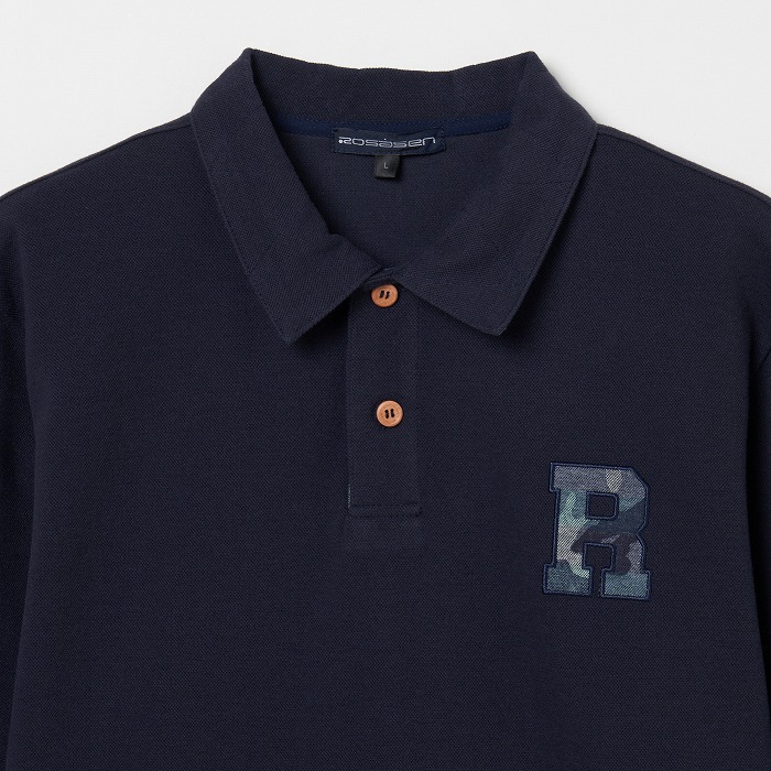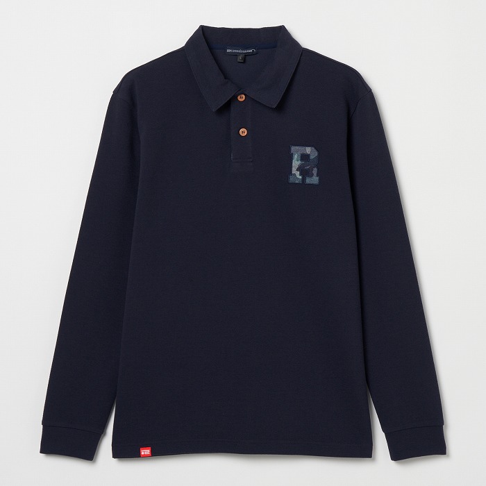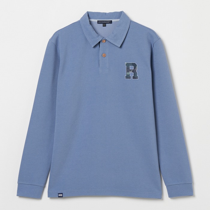 スポーティーな中に大人の遊び心をプラス。鹿の子ダンボール素材の長袖ゴルフポロシャツ。通気性が良く快適な着心地です。胸元の「R」のアップリケと、衿裏の迷彩柄がさりげないアクセントに、襟を立ててゴージャスに着用できます。落ち着きのあるカラーでどんなボトムスにも合わせやすく、コーディネートの幅が広がります。