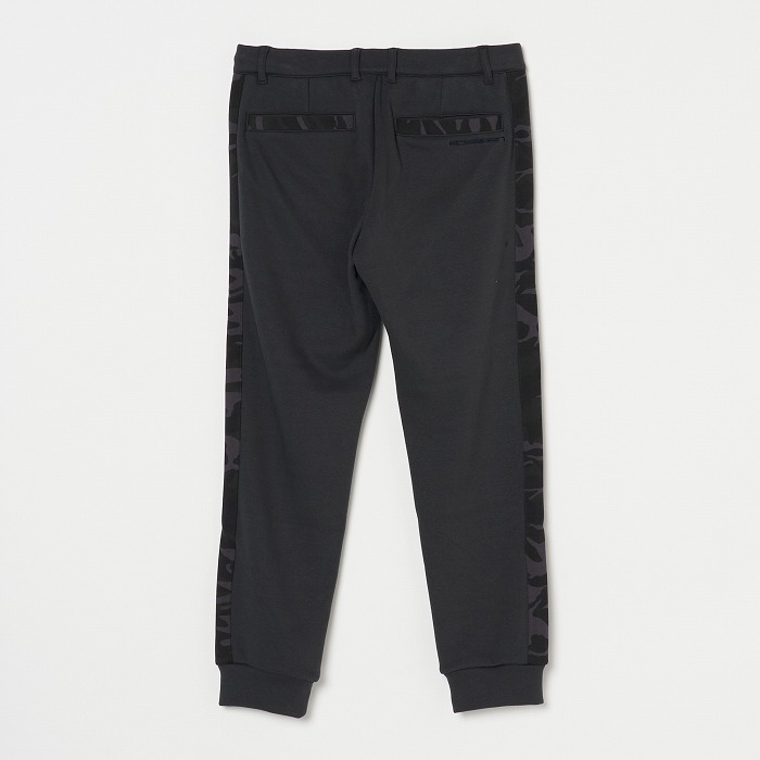 裏起毛で暖かく、快適な履き心地のジョガーパンツ。サイドの迷彩柄切り替えが、スタイリッシュなアクセント。同素材のトップスとセットアップも可能です。ゴルフはもちろん、タウンユースにもおすすめです。