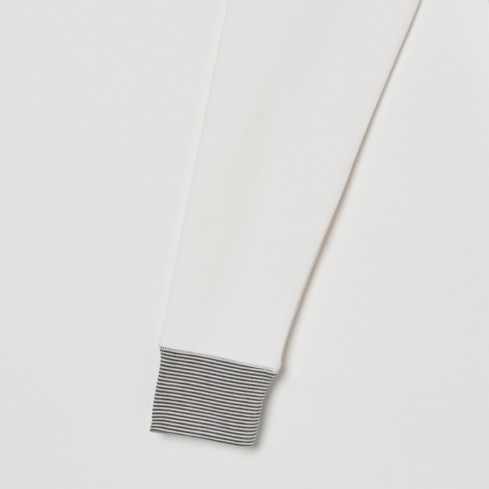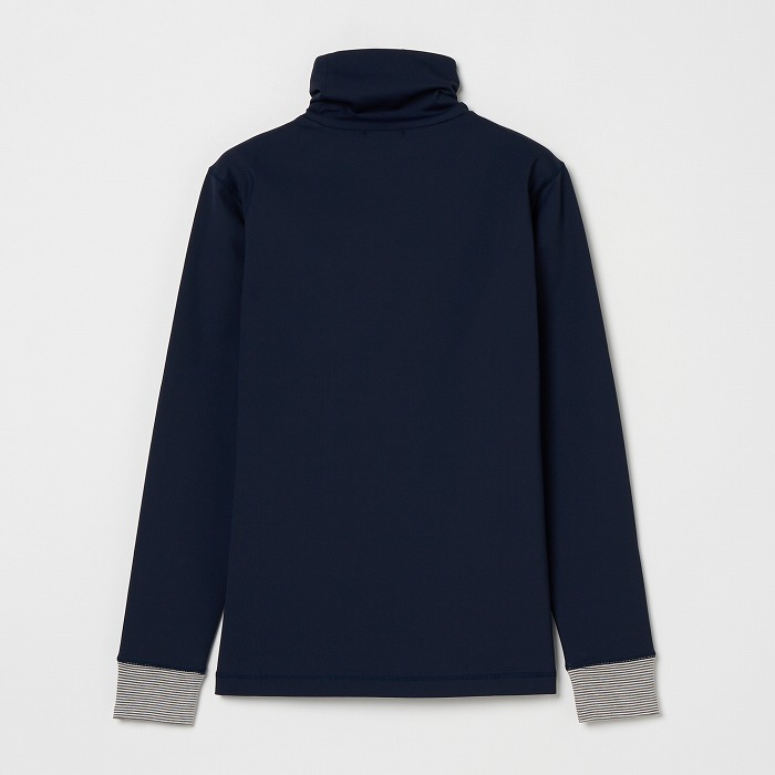 目の詰まった防風素材で、冷たい風をしっかりブロック。裏起毛なので保温性も抜群で、寒い冬も暖かく快適に過ごせます。衿裏にはボーダー素材を配置し、さりげないアクセントに。コーディネートに合わせて、襟元の見せ方を楽しめるのもポイントです。