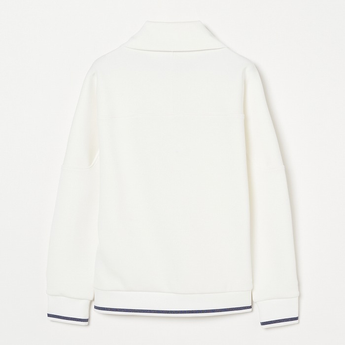 柔らかで肌触りが良く、ストレッチが効いた薄手のダンボールニットを使用。スウィング時の肩の稼働域を考慮した切り替えがポイントのゆったりシルエット。ロゴの擦れや杢調のラインがヘリテージ感を演出した1枚でも羽織としても重宝するアイテム。