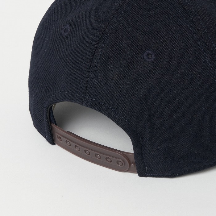 アッパーは起毛ツイル素材を、ツバはポリエステルのフェイクスエードを使用。ツバやそれに合わせた配色の立体ロゴ刺繍がアクセントになったベーシックなキャップで、後はアメリカンアジャスター仕様でよりカジュアルに。