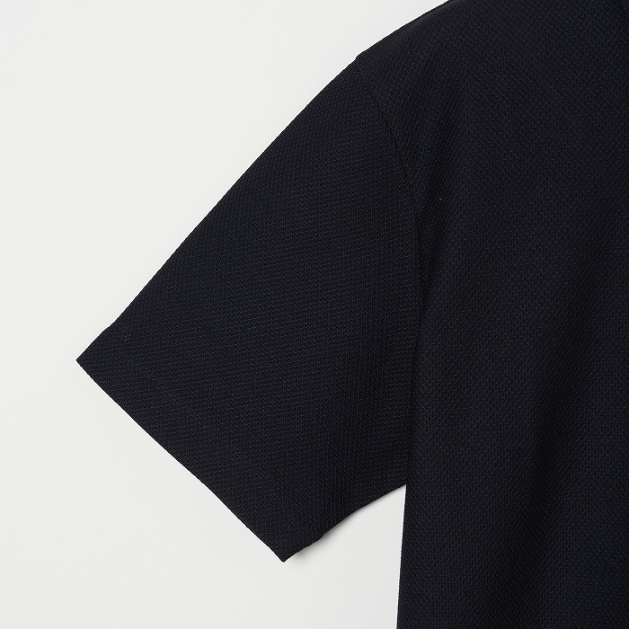 綿麻の糸と帝人の高い吸汗・速乾性、軽量でドライなタッチの糸を交編した素材を指標しています。麻のシャリ感とバーズアイの組織で雰囲気のあるシャツに仕上がっています。メッシュ組織ですので非常に軽量で風通しの良いアイテムです。