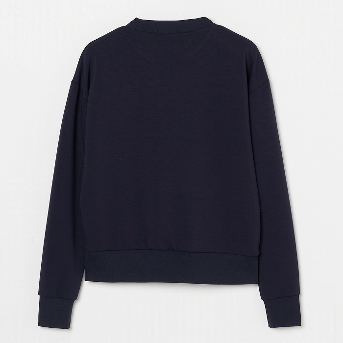 着心地が気持ち良いと好評のダンボールニットを使用したスウェットです。胸元には存在感のあるオリジナルの刺繍が施されています。スポーツクラブのようなロゴが表現され、カジュアルながらもスタイリッシュな雰囲気を演出します。セットアップでも単品でもお使いいただけ、様々なシーンでお楽しみいただけます。