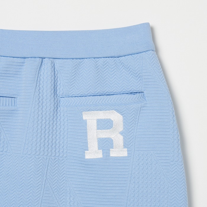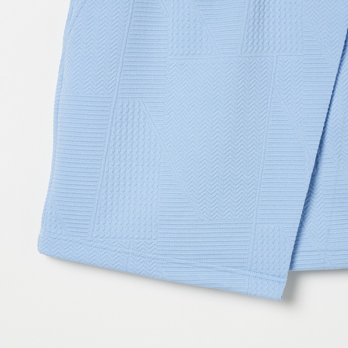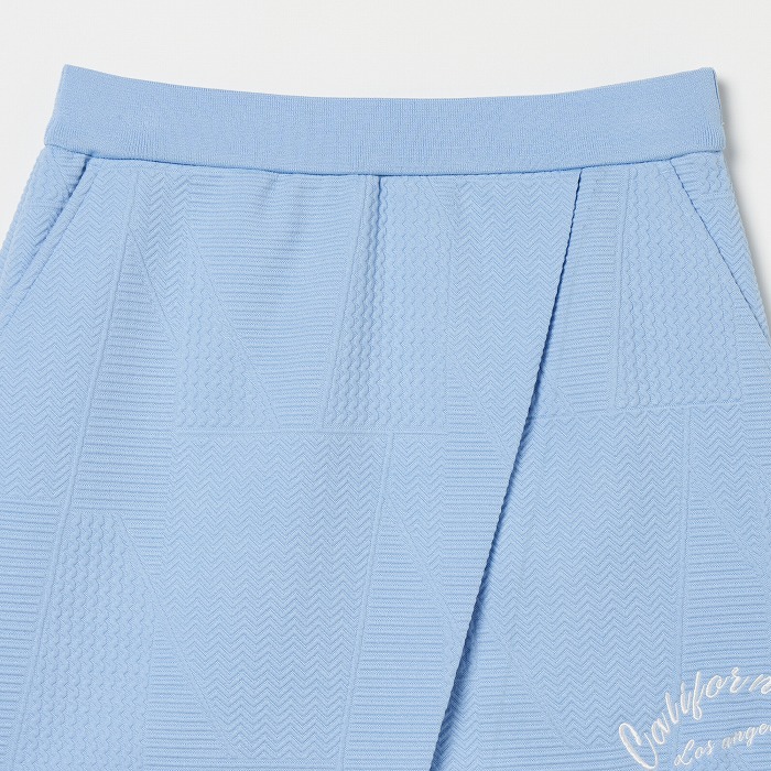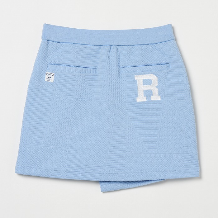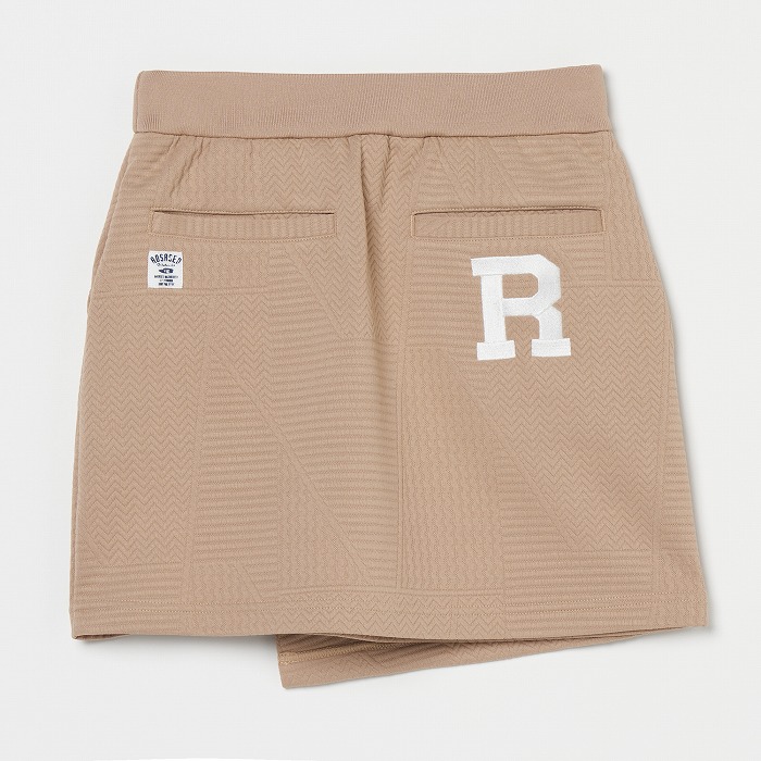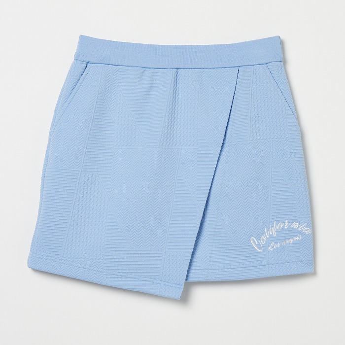 パッチワーク柄を表現した、膨れジャガード素材を使用したスカート。表面感のある個性的な素材が、周りと差をつけるおしゃれなアイテムです。左前と後ろポケットのロゴ刺繍がデザインのポイント。同素材のプルオーバーと合わせたセットアップスタイルもおすすめです。