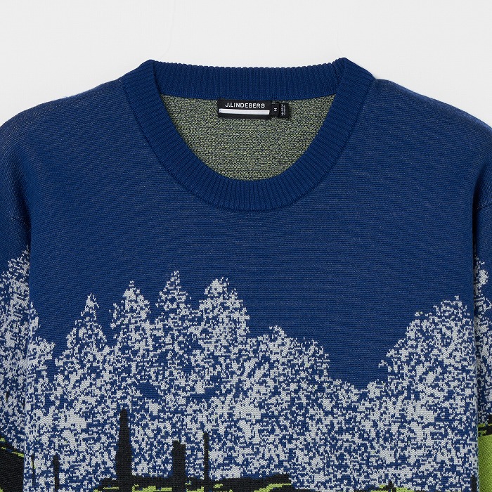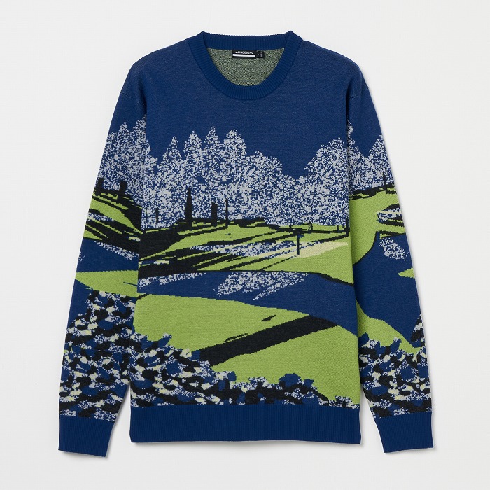 オーガスタゴルフコースをイメージした5トーンのシーズンモチーフが特徴のクルーネックセーターです。メリノウールを使用したジャカード編みで、リブの襟、カフス、裾がスタイリッシュな印象を与えます。消臭コントロール、湿気管理、体温調整機能を備え、快適な着心地を実現。柔らかな素材感で、ゴルフやカジュアルシーンにぴったりの一着です。