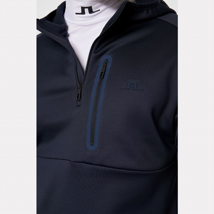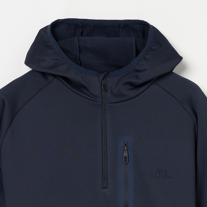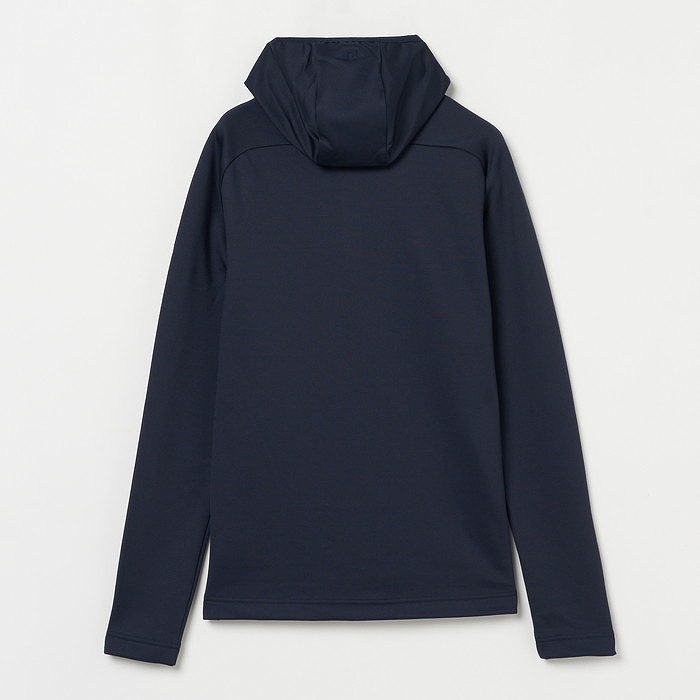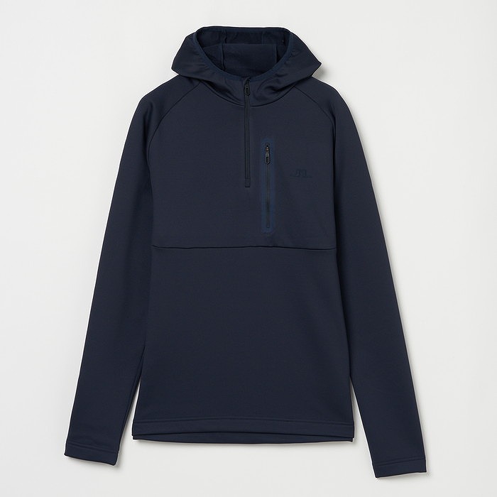 快適さと保温性に優れたTXストレッチフリースを使用したクオータージップフード。カラーブロックが特徴のデザイン。裏起毛のフリース素材。左胸とフード上にシリコンブリッジマークがあります。左胸ポケット口とフロントのジップはステイダウンの引手を使用。左胸ポケットのジッパーは、フィルムテープ付きです。ストレッチ・速乾性の素材特性があります。