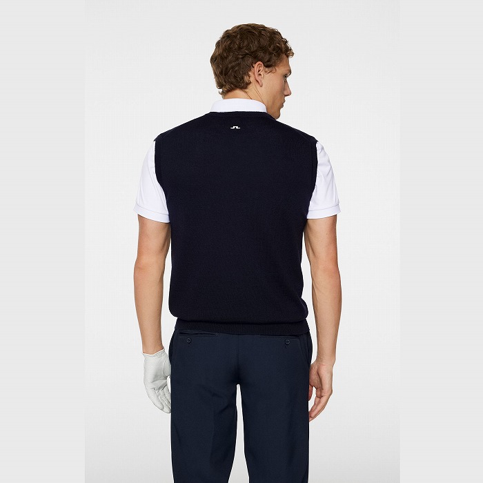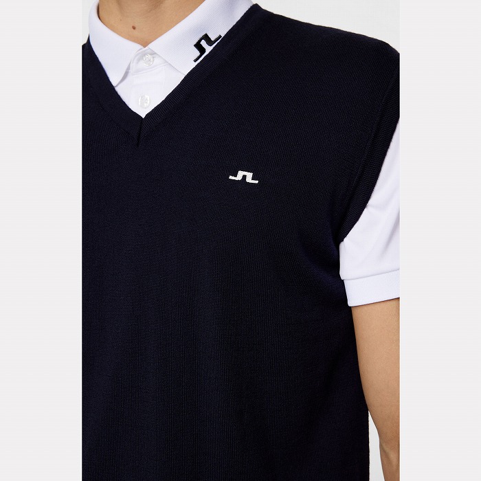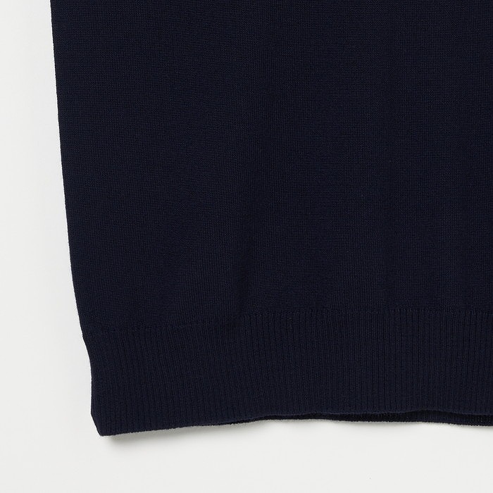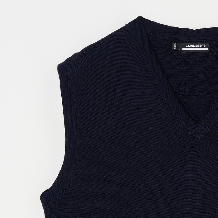 メリノウール使用の軽量ベスト。オールシーズン着用可能で、重ね着に最適です。胸元にブリッジ刺繍があり、12ゲージのハイゲージとなります。防臭性・体温調節の機能特性があります。
