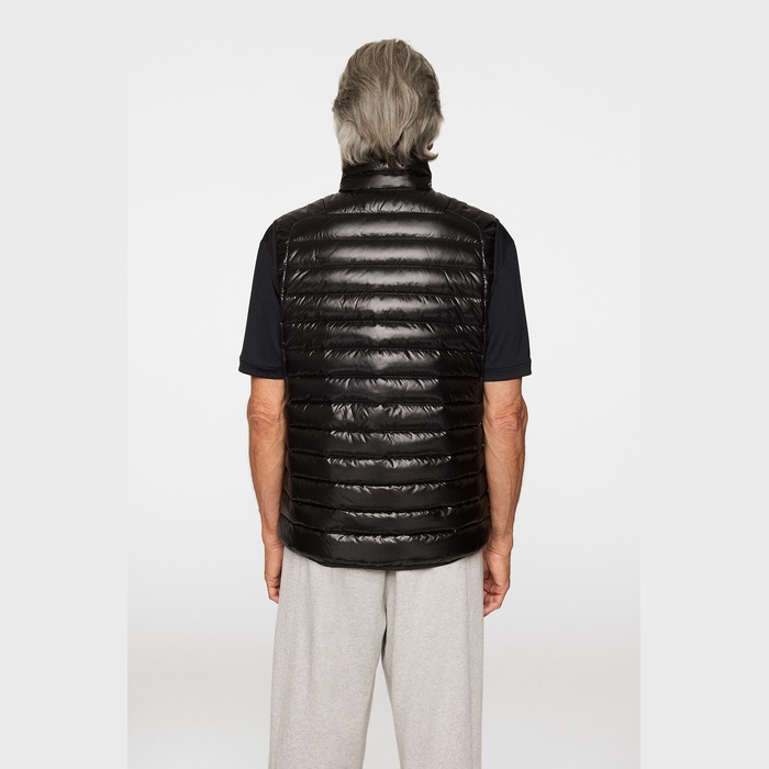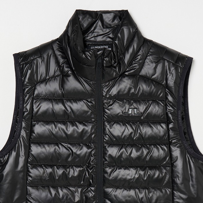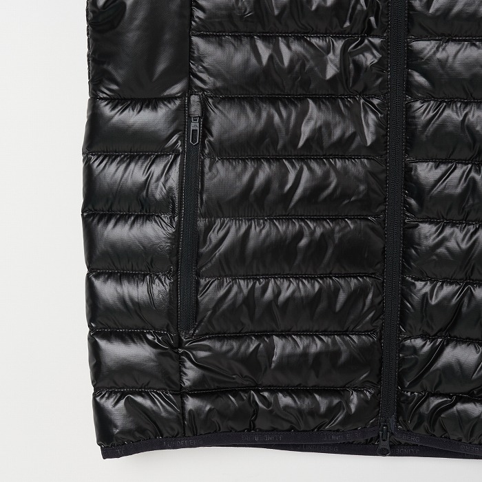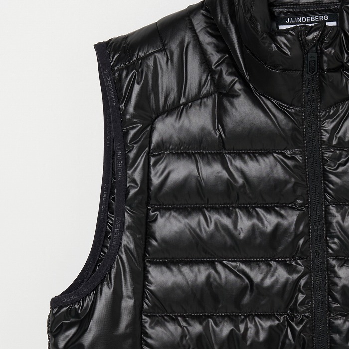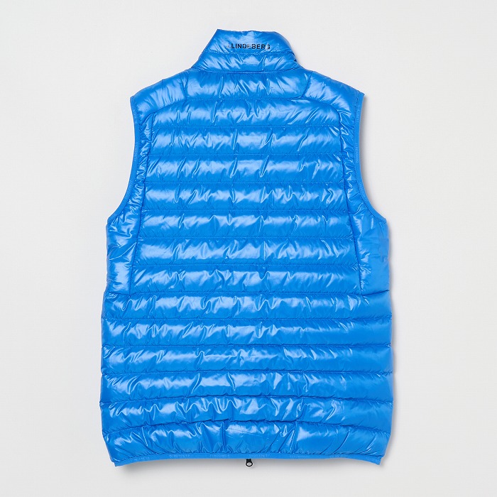 軽量で圧縮可能なダウンベストは、リップストップのような外観を持つ新素材Aether softを使用。クラッシックなスタイルは肩にブリッジパネルをインサートしアップグレードされています。撥水性と防風性を備え、軽量で快適な着心地を実現。胸にはブリッジロゴ、襟にはJ.LINDEBERGのテキストプリントが施されています。撥水加工は環境に配慮したPFCフリー加工で、ブルーサイン、GRS(Global Recycled Standard)、エコテックス認証済みとなります。