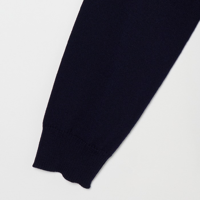 リブ編みの袖口と前立てに5つボタンが特徴のクラシックなメリノウールカーディガン。自然な臭性・体温調節の機能特性があり、胸にはブリッジロゴの刺繍付き。フルファッションディテール、12ゲージとなります。糸はエコテックス認証済みとなります。